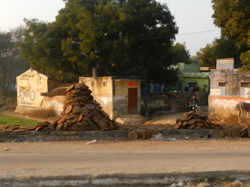 До Агры от Рантамбора 270 км. По индийским дорогам с их хаотичным, непредсказуемым движением мы ехали больше 8 часов. Пейзажи почти беларуские – рапсовые поля, разделенные перелесками. Но местная специфика сразу возвращала на землю, как эта лавка по продаже коровьих лепешек.