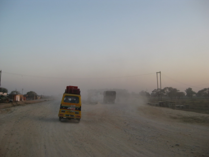 Любой рассказ о наших индийских приключениях я начинал с того, как и сколько мы ехали до следующего пункта назначения. Так вот, дорога в Каджурахо побила все рекорды и в вопросе «как», и в вопросе «как долго». 400 км растянулись на долгих и пыльных 12 часов тряски нон-стоп. Началось все довольно неплохим четырехполостным трактом, но через какое-то время национальное шоссе №75 и №3 превратилось в грейдерную дорогу типа «стиральная доска» с огромными выбоинами, брустверами и наплывами старого асфальта. Наш автобус периодически цеплялся днищем о какие-то особенно габаритные выступы полотна. В воздухе стояла плотная завеса из жары и пыли. Пылью было покрыто все вокруг – деревья, кусты, коровы, люди и объекты придорожного сервиса.