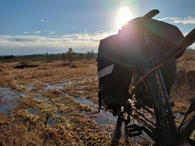 Несмотря на всеобщую депрессию и стагнацию во всех сферах, традиционно под занавес 2021 года состоялся этот необычный камерный не то вело, не то пеший поход. Велопоход, правда, изначально планировался как плохой. Целенаправленно частью трека было презентовано обширное болото на границе двух государств. В трехдневном походе как можно проделать на велосипеде километраж всего в 91 км?! В том то и дело, что по ходовым часам ехать получилось совсем не много. Это был скорее пеший трип.