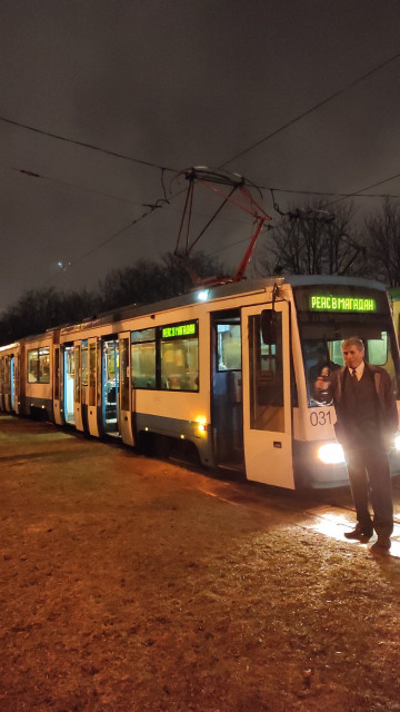 Трамвай АКСМ 743 трехсекционный. 26 метров в длину. Мест для сидения 66. В трамвайном парке есть еще подобные и более современные АКСМ 843. Однако, 743-ий мне, Глазу, показался для мероприятия предпочтительней. Более того, его в скором времени собираются списать и передать в пока не существующий Музей Городского Транспорта. Требовалось ловить момент.