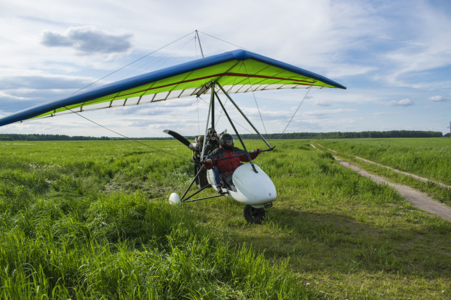 Мотодельтаплан плавно движется по небесному склону, позволяя пассажиру забыть о страхе и наслаждаться видами.