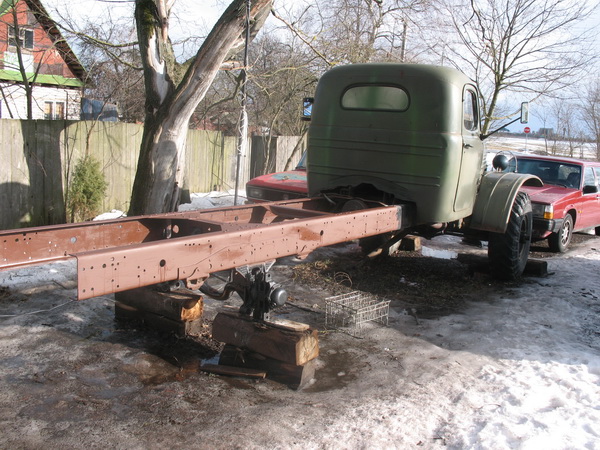 Извечная проблема, что времени на этот ЗИЛ совсем нет. Хотя мало у кого время есть вообще, и надо уметь напрягаться так, чтобы успевать всё. Тем не менее, дело наше, пускай и черепашьими темпами, однако продвигается. Позади кабины, нет уже ничего – все разобрали, остались только продольные лаги рамы и те поперечные элементы, которые на клепках и их открутить нельзя. Ровно два года назад мы сняли пролет в заборе и затолкали в огород наш УАЗ. Теперь также мы сняли тот самый пролет и закатили оба задних моста, которые Глаз в тот же самый день, вооружившить домкратом, вывесил.