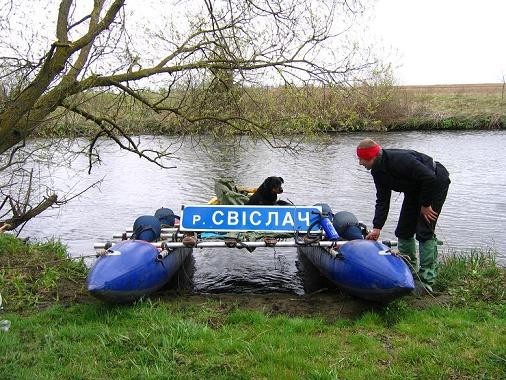 Непогожим декабрьским днем со станции метро Кунцевщина вышли Глаз, Дед и парень с румяными щечками. Все трое направлялись на улицу Притыцкого к Кириллу с большой массой тела.В условленное время дома никого не оказалось. Однако спустя минут пять в свете вечерних фонарей в нашу сторону направлялся силуэт, сверхтяжеловесного вида.- Смотрите, это, наверное, и есть Кирилл с большой массой тела.Дома на полу Кирилл разворачивал свертки, что-то объяснял, показывал шкафообразно и несокрушимо. Это была презентация катамарана- четверки. Человек-шкаф хотел за него 600$. Цена вполне адекватная.Выглядели мы, конечно, студентами-щавликами. Человек с большой массой тела выглядел, как катамаранщик, непоколебимым авторитетом. Отрубленные рамой концевые фаланги пальцев (во время прохождения порога) придавали еще больше значительности. Глаз через несколько дней четверку решил брать. Брать, пока продают. Сделку наметили на 10 апреля, и я начал копить нужную сумму. Непогожим днем 10 апреля со станции метро Кунцевщина вышел Глаз. Дед и парень с румяными щечками ехали на машине и явно опаздывали. Все трое направлялись к Кириллу с большой массой тела на улицу Притыцкого.В условленное время дома Кирилл оказался. Спустя некоторое время приехали и Дед с Женей. Нужно было быстрее брать, а то уже весла не прилагались. Более того, Человек-шкаф хотел зажать добротную желтую сумку. Но добротную желтую сумку все-таки выдурили. Спустя еще дня четыре Глаз ходил туда же с Человеком-Рукой забирать треснутую алюминиевую трубу, которую Кирилл с большой массой тела не додал. Так или иначе, катамаран был уже моим.-Ой, ребята, он тяжелый. Килограмм сорок будет, не меньше.Весил он явно...