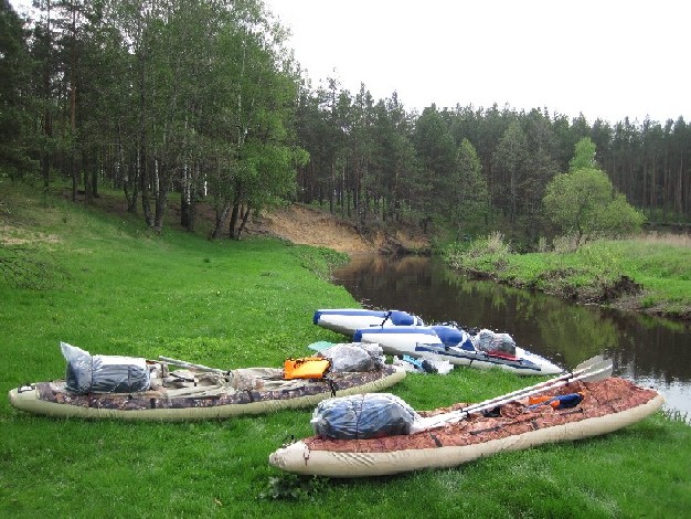 Открытие сезона сплав по реке Волма 8-9 Мая 2010 год.Организовывал сплав Андрей он профессионально занимается туризмом, и по совместительству является одним из лидеров сетевой компании NSP. Наша команда состояла из трёх женщин и семерых мужчин, всего десять человек. Из плавсредств у нас было три байдарки щука-2, одна таймень и один двухместный катамаран тритон. Сплав организовывался как мини корпоратив компании NSP. Единственным человеком на сплаве, который не имеет отношения к вышеупомянутой компании, является автор повествования Эдуард. Андрей пригласил меня на это мероприятие за неделю. Я, посмотрев прогноз погоды, уточнил, не смущают ли его проливные дожди, пророчимые на дни сплава? Андрей уверенно заявил, что весной погода неустойчивая и дождя либо не будет вовсе либо будут кратковременные.Выдвигаться решили в пятницу 7–го Мая после работы, чтобы вечером разбить лагерь, а утром отчалить.7.05.2010.Встреча в Марьиной Горке, загружаем вещи и байдарки в микроавтобус и едем на берег реки Волма. Проезжая деревню Иваничи кто-то вспомнил, что не взяли миску для салата. Сергей – участник нашей компании попросил водителя остановиться, взял телефон и набрал номер. Разговор был приблизительно таким:- Привет дружище, выручай, мне нужна миска для салата.- Извини друг, но я уже не в Минске, а в Иваничах.- Я сейчас к тебе приеду.- ???!!! но здесь наверно нет такой миски.- Ничего что-нибудь найдём.Через десять минут друг Сергея с расширенными от удивления глазами вынес миску для салата. Пока ждали миску, народ из микроавтобуса обглодал ветки растущей возле калитки липы - очень уж вкусные оказались молодые листочки.В восемь часов вечера мы были уже на шикарной лесной поляне в чистом сосновом лесу....