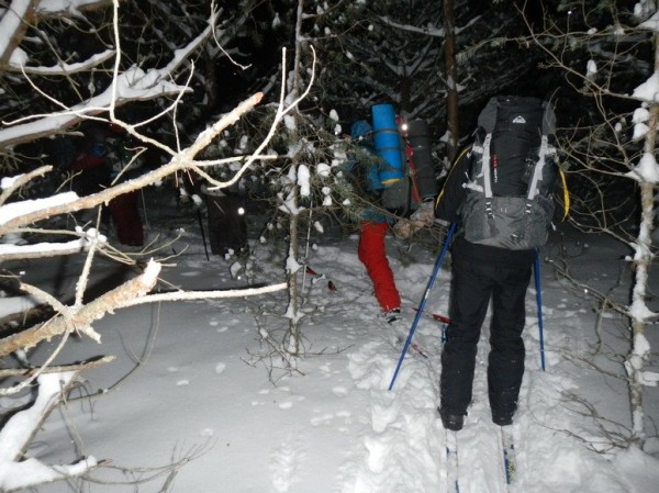 Навигаторы массово у обывателя тогда только начали появляться. Предводитель (Глаз), будучи ретроградом, шел по азимуту. С лыжами по снежной целине влезли в жесточайшие многоярусные завалы. Столь неудачно только в этом маршруте. Обычно затруднения с правой стороны составляет таран сплошных зарослей кустов. Уже давно должны были выйти, даже слышали пиротехнические взрывы группы моральной поддержки и технического обеспечения, как в компасе замерз глицерин.