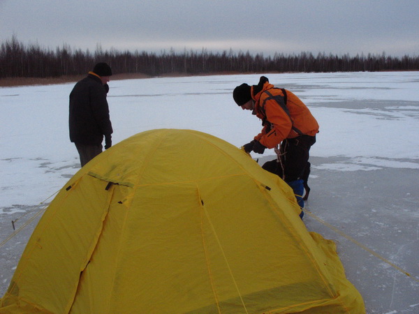 Все было почти так же, как и неделю назад, только всместо Саши приехал Сережа Margasan и было светло. По льду носилась короткобазная японка, развлекаясь штопорообразными заносаи, даже подъезжали к нам близко посмотреть, что это может тут такое быть. А ведь мы менее всего были похожи на рыбаков.
