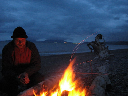 Беспокойно накатывались на берег морские волны. Ветрено (в сравнении с Полярным Уралом легкий воздушный бриз). Приготовили шашлыки. Мангалом были бревна топляка, дровами, выброшенный на берег и высушенный ветрами топляк, шампуры тоже были выструганные ножом из прутьев топляка.