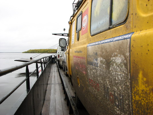 Ехали совсем плохо. Саша откровенно убивал подвеску. Он торопился и нервничал (чтобы успеть на паром). Я в это время печатал и нервничал еще пуще. В ямах стояла вода, небольшая плавная вмятина, залитая водой не отличалась визуально от глубокой выбоины. Что-то стучало в переднем правом колесе. Мотор ревел, как все моторы без глушителя. Сначала это было прикольно, но от воя и шума быстро начало утомлять. Дорога все ухудшалась и с каждым километром разбухала. Случались и встречные машины, обычно после разъезда с ними, пропадал свет. Фары работали, но на них защитным экраном лепилась грязь и быстро подсыхала. Останавливались, выходили на дождь протирали фары салфеткой. Количество салфеток было ограниченно. По одной на две фары (в процессе движения использовали четыре фары, третья пара «приказала долго жить» еще в Златоусте»). На грани фола работали стеклоочистители. Дождь не прекращался, но был слабый и кропящий. Из зимнего сада показывалась время от времени белобрысая голова нашего Сережи.