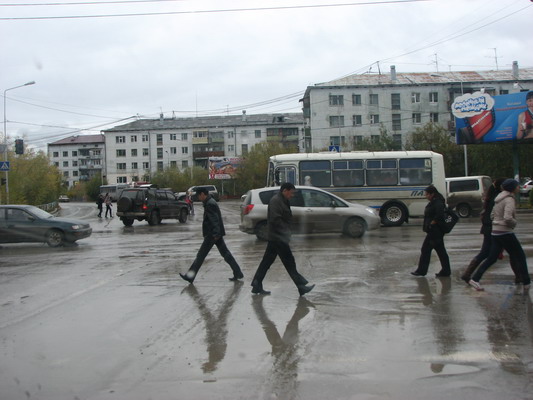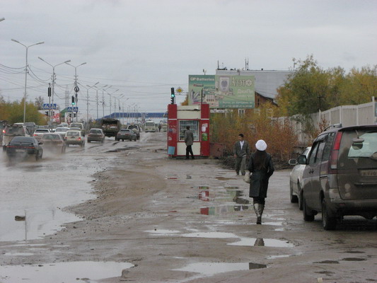 Якутск был сам по себе городом средней руки. Погода и особенности региона сделала из здешних дорог какое-то месиво. Тротуары для пешеходов тут, как и везде в России не планировались. Разумеется, город не так велик, можно ходить по нему запросто пешком. Но решительно здесь негде ходить, то есть не по чем. Движение для подобного города сногсшибательное. Был бы за рулем какой ботаник, типа меня, непременно случился бы какой-нибудь конфуз. Но Сергей по городу ездил уверенно, со сморкающейся коробкой и прокручивающимся сцеплением.