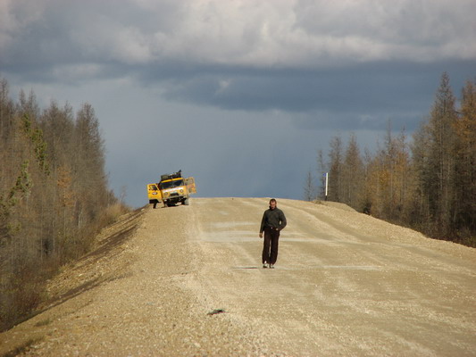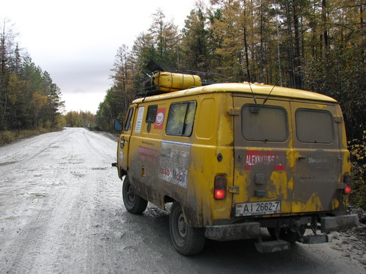 На сайте фанаты и поклонники опять поспорили. Оценивали «крутизну» автопрбега. Автопрбег номер 38, скажу вам, как участник был, конечно, весьма занимателен. Но ничего крутого в нем и быть не могло. Случались редкие остросюжетные моменты. Но спортивным он был в последнюю очередь. Скорее круизный отдых. Мы на полном пансионе жили в самоходном железном сарае, из которого наблюдали за происходящим вокруг. Это был наш дом и убежище. Не валил с ног ветер и не нужно было выпиливать и носить снегоблоки, не было необходимости прятать обувь, задубевающую на морозе, а когда не прешь на себе килограммов под сорок, можно и статейки попечатать. Частые ремонты, разумеется нас уже …ли, но без них было никак. Купите хоть какую современную запчасть на УАЗ и внимательно на нее посмотрите. Приобретенные нами наименования были уже заведомо бракованы. А пока буду только впечатлениями хвастаться. Вот, когда съездим зимой на мыс Дежнева, буду судить спорящие стороны. Тем более, что сегодня я был «занят». Универсальный водитель вез нас домой со скоростью 25 километров по первой транспортной артерии Якутии. Кто слушал музыку, кто читал журналы, кто решил опохмелиться. Но здесь промашка вышла, тут мы, конечно, немного переборщили. Так и прошел мимоходом день. Ехали, почти не останавливаясь. Отвоевывали у дороги обратные километры. Но проехали немного. Где уж здесь разгонишься.