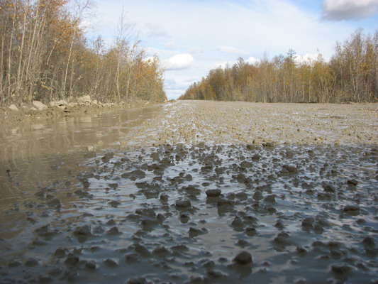 Многочисленные острова с низкорослым речным кустарником. Осень… Обмануть судьбу и осуществить ход конем не удалось. Итогом Якутской стратегии был пат. Какое- то время потеряли, при своем остались, «срезать» не вышло. Было бы неплохо нам поспешить. Ситуацию с такими Федеральными Трассами не очень то и спрогнозируешь. За рулем ехал Сашенька. Снимали дорогу на камеру. По пути потеряли кассету со вчерашним днем рождения. Удивительно. Но кассету нашли. По ней кто-то уже проехал и расплющил колесами. Саша сказал, что можно попробовать восстановить. Но не факт.