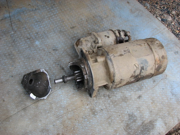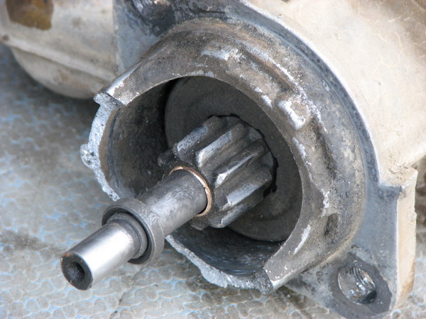 Короче, стартер имеет своеобразную овоидную форму. Концевой фрагмент задней полусферы откололся, теперь он свободно болтался и бил по маховику. Ось там, кстати, и закреплена. Причину раскола корпуса определили, как идеопатическую.  Решили обратно не ставить. Все равно он развалиться, раз опоры для оси нет. А не так просто его снять лишний раз и поставить.