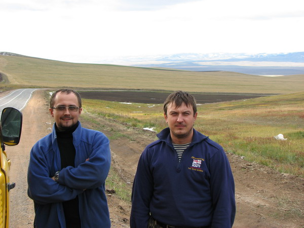 После ночной езды коллеги были уставши. Пришлось в летне-пляжной одежде выходить на минус пять. Утренние сумерки. Ветер гуляет по просторам степей. Двигатель еще теплый. Нет уже там антифриза, его, вследствие, утечек разбавили водой  до низкого титра. Авось пронесет и не замерзнет система. Должны проскочить.