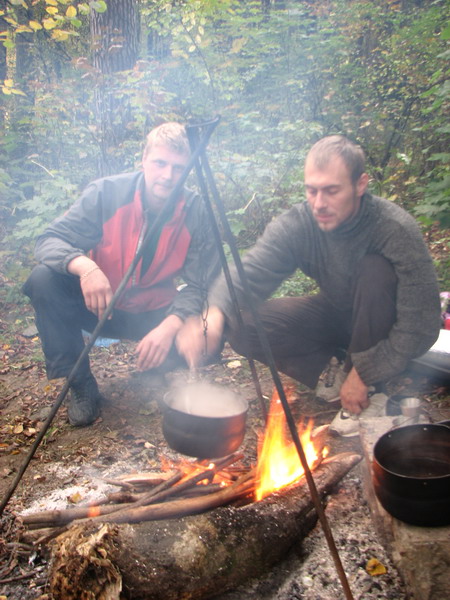 Сотрудник прибыл в назначенный час на белой тойоте. Звали Паша. Долговолосый, с хвостиком. Выглядел, как классический представитель своей профессии. Необходимая аппаратура оказалась при нем. Они долго беседовали с Сашенькой в Батоне. Мы занимались костром. Завтраком, чаем.