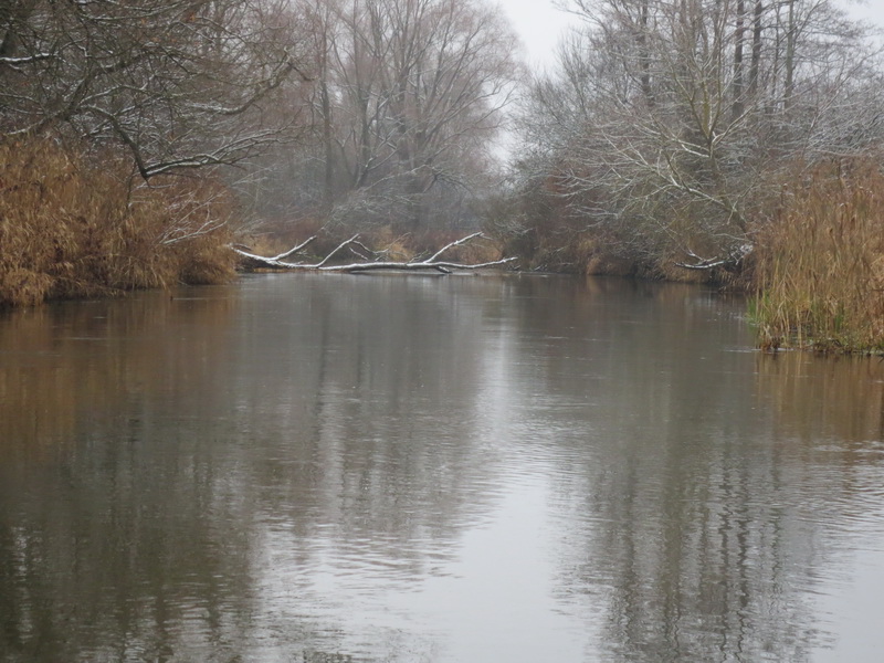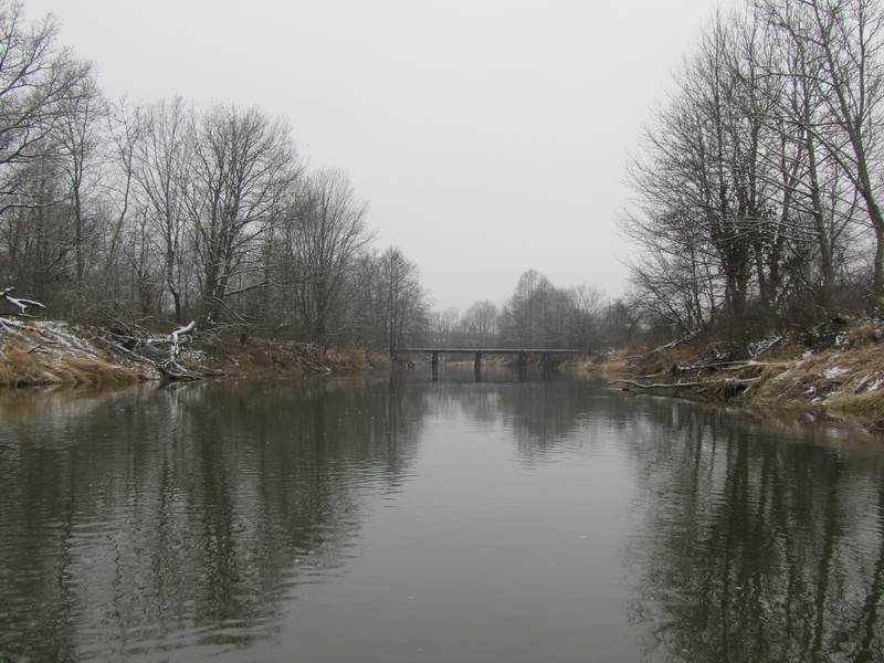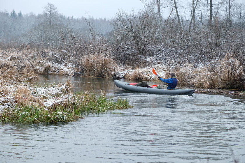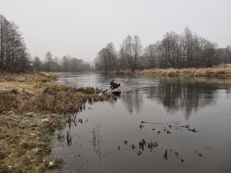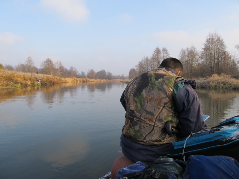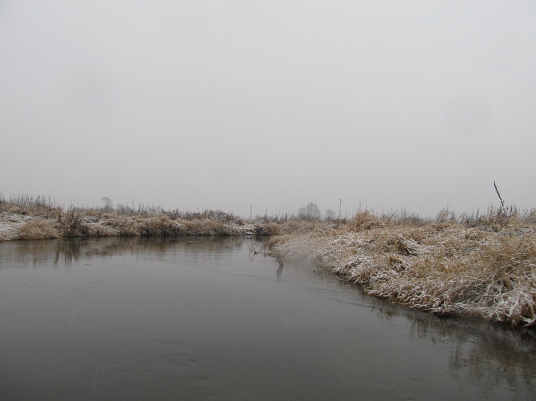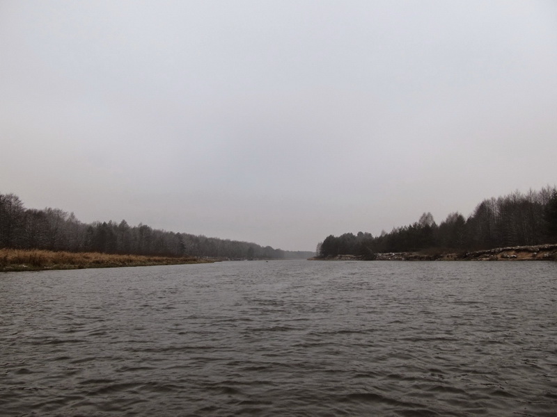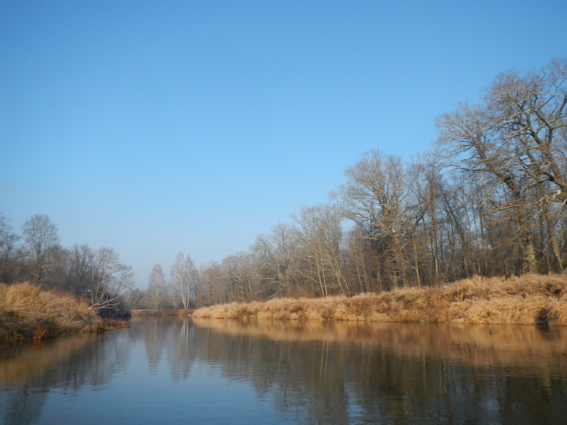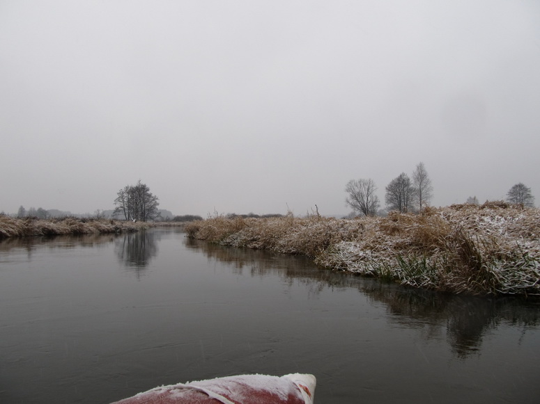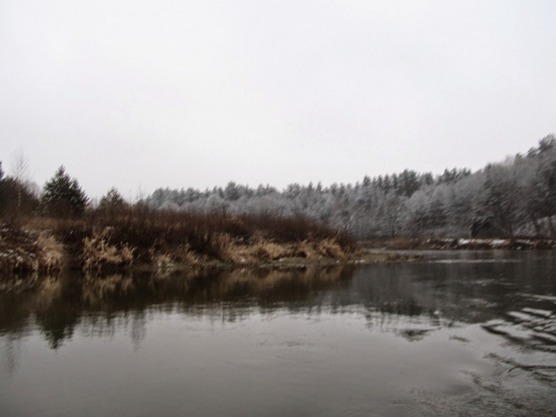 Река текла в лесных с двух сторон берегах. Начало зимы это было прекрасно. Русло стало шире и чем далее вниз, тем плавнее и сглаженней повороты. Встречались даже долгие прямые почти километра под два плесоподобные участки.