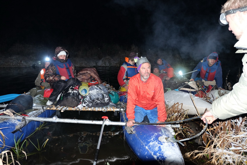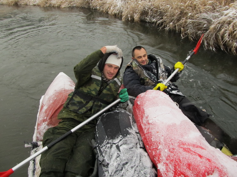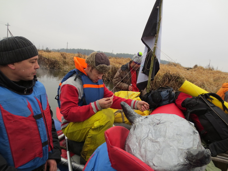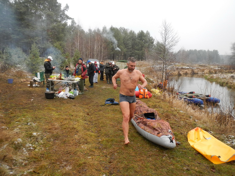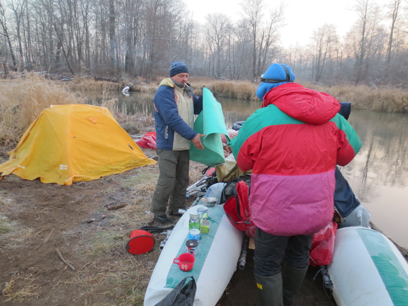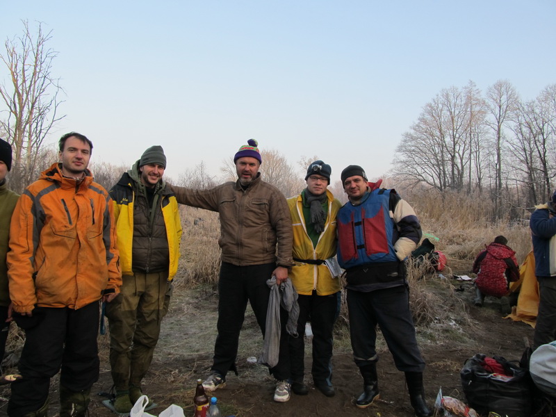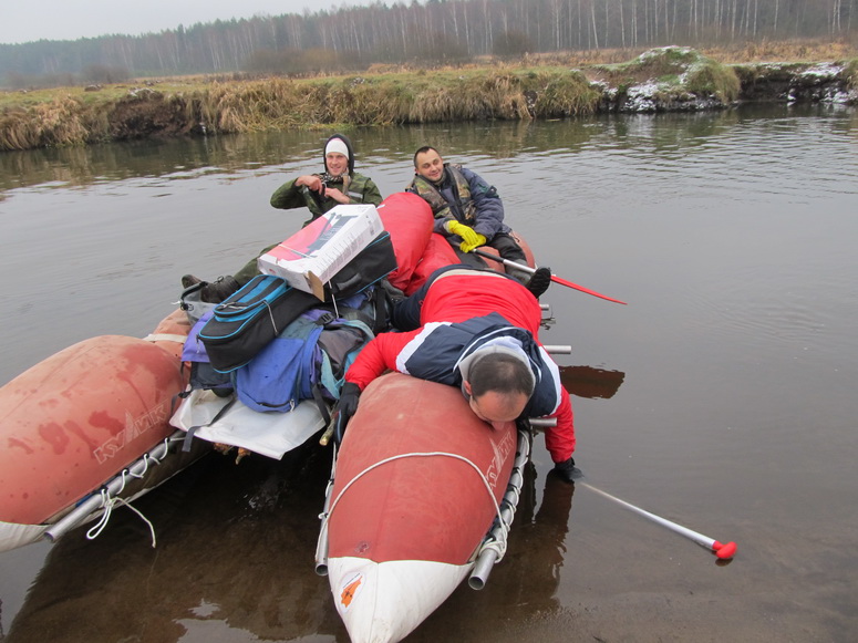Эдуард приехал с двумя друзьями. Одним из поводов был ловить налима. Для ловли налима вот эта погода с резким похолоданием подходила как нельзя лучше. Кроме ловли налима они до конца не верили, что по реке должны сюда приехать какие-то барыги на байдарках и катамаранах. Были ошеломлены, увидев, что действительно едут.