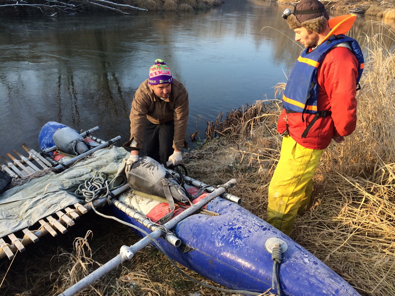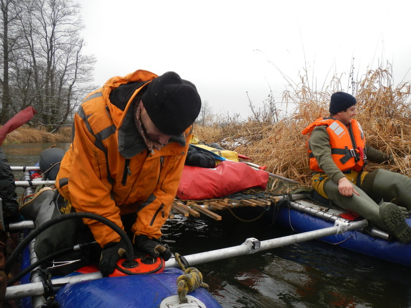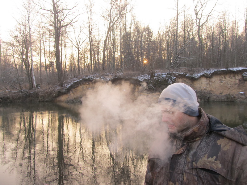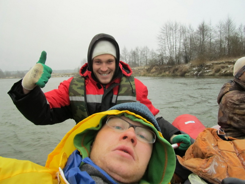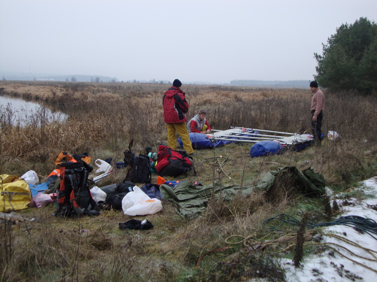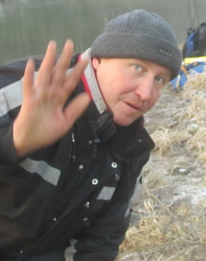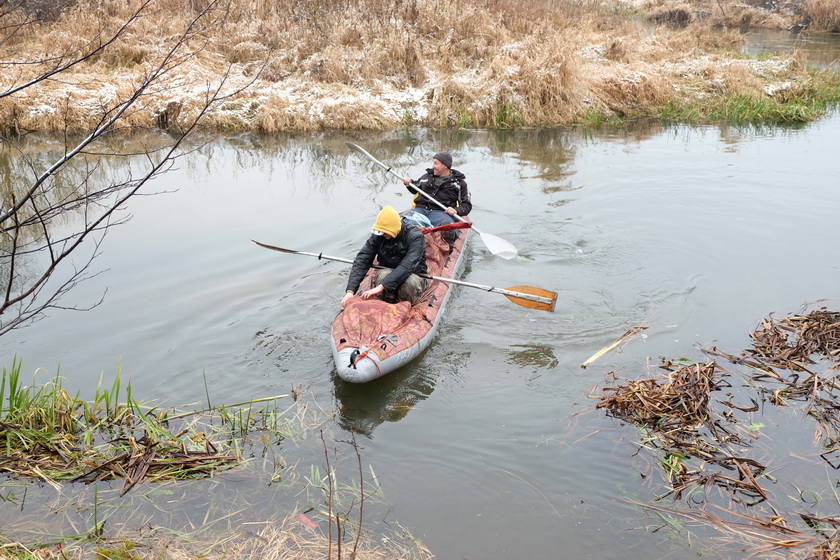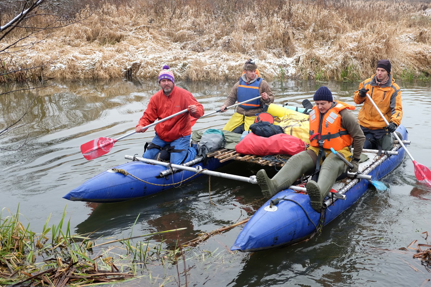 Эдуард приехал с двумя друзьями. Одним из поводов был ловить налима. Для ловли налима вот эта погода с резким похолоданием подходила как нельзя лучше. Кроме ловли налима они до конца не верили, что по реке должны сюда приехать какие-то барыги на байдарках и катамаранах. Были ошеломлены, увидев, что действительно едут.