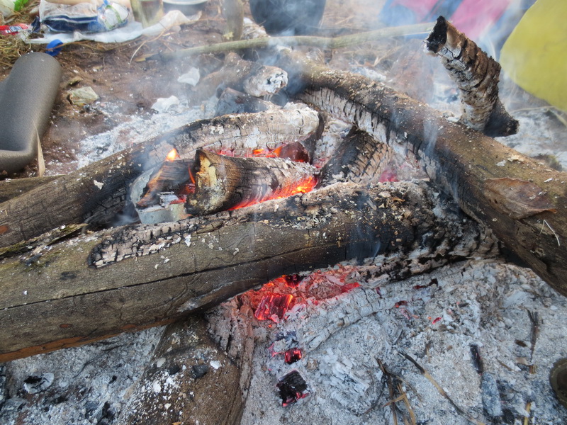 Поход был соряжен с праздностью и мясничеством. Воднотуристическая команда стала экономить силы. Не было высокопарных изречений, как вчера, гитарных песен и прочей экспрессии. Более сдержанный теперь гомон, размереннный стук ложки о миску, тусклый налобный фонарик, почти бездымный углистый костер-ладья.