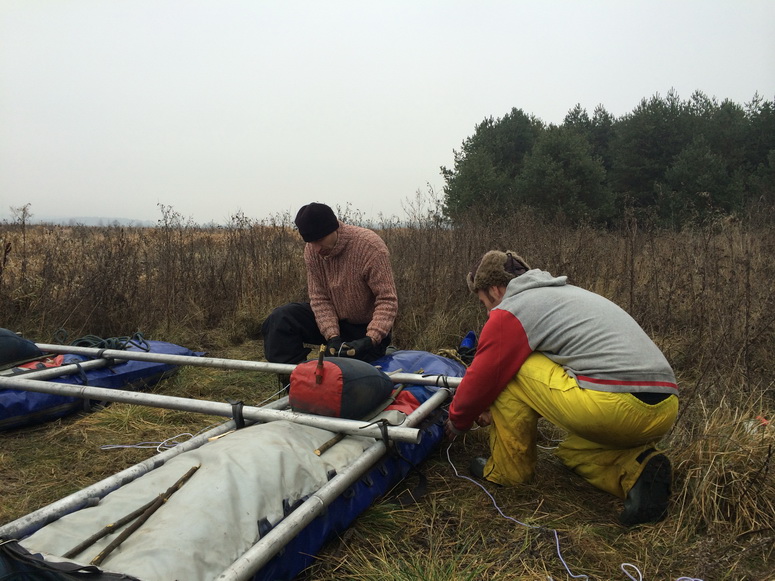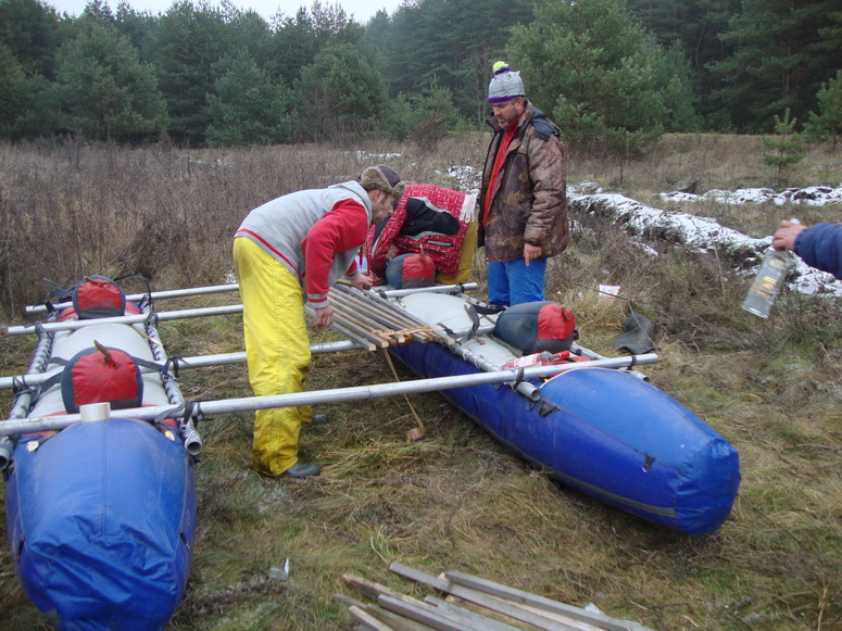 Глаз (с помощниками) идеально ровно связал раму и расправил внутренние баллоны, но отвратительно увязал носы. Катамаран в итоге спускал навязчиво быстро. Это нас не убило, но много забрало впоследствии сил, причинило страданий и дискомфорта.
