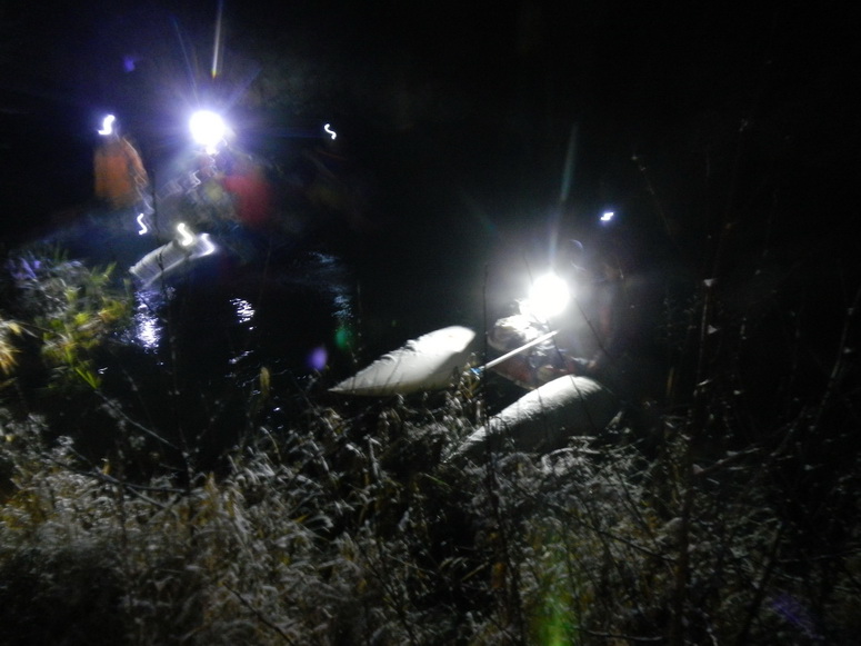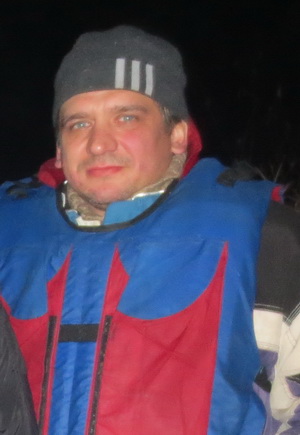 Это был резкий поворот русла направо. Мы уже поворот почти завершили. Каким-то случайным взором Слава-Электрик, повернув голову влево, где была какая-то затока, вдруг увидел Леху. Вернее сказать, от фонаря отразились какие-то светоотражательные элементы или байдарки или еще откуда-то. И сразу полный назад, стоп машина! Въехали в затоку. Он явно не стремился себя обозначить. Леха, зачалившись, грелся в спальнике, свернувшись калачиком в утробе байдарки.