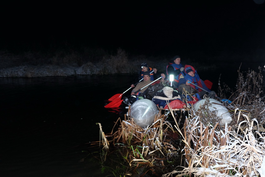 Чалку в деревне Николаево нашли не сразу. Сначала в темноте забрались в какую-то затоку. С хрустом проломался стеклоподобный ледок: