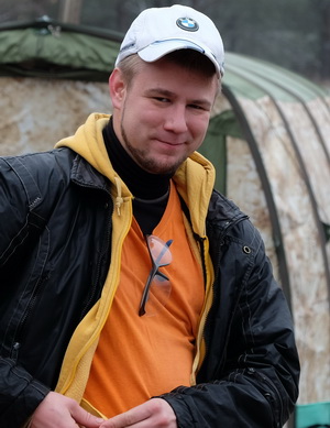 Неман велик и прекрасен. Пришли засветло в место между двумя деревнями. Обрыв метра 4 может больше. Гюго сбегал ниже, сказал, что напротив церкви место для чалки лучше. Зачалились, стемнело, с помощью местного (принес сухих дров) развели костер. Собрали каты, пили, ели, ждали остальных. Мне уже и домой не хотелось, но приехал Палыч, и стали собирать ваш (Глазовский) кат, пришедший последним. Потом было кафе, кока-кола и водка «охота». Оторвлась педаль, починилась в 5 сек. Все: виталюр и Руся без штанов.
