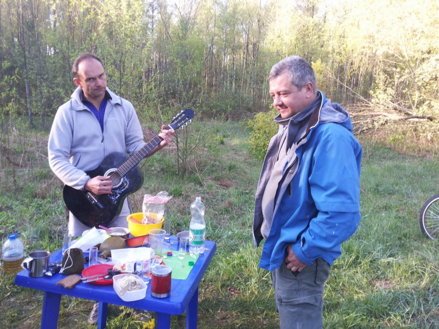 Токарь приехал в Руденск еще с вечера, а все остальные участники выезжали на электроне из Минска уже в субботу. ВДВ садился в электрон с Мишей Миндибековым в "Нормальных Мачулищах", а Сережа Мюцаг ехал из Бобруйска. Приезжал он на час позже остальных и его появление и было принято за время начала похода.