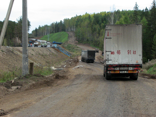 Объездная дорога вела через Тайшет. Погода из дорожного покрытия, которое оставили на произвол судьбы, сделала фарш. Ехать получалось не  иначе, как на второй передаче. Федя со своим бусом «Уебох» здесь бы точно сошел с ума. Расценивали это как прелюдию к федеральной трассе Лена.