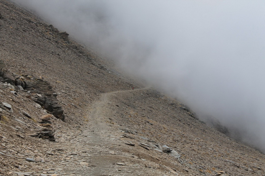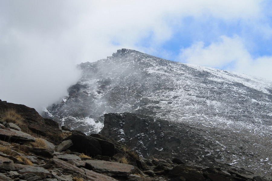 Выбранный мной из обилия найденных в интернете треков привел нас в итоге к подножию Муласена. Снежная его вершина сияла прямо над нами, но впереди было еще 400 метров вверх, причем практически «в лоб».