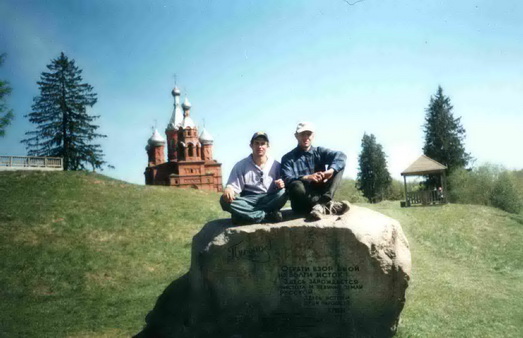 Любопытным оказалось местечко Волговерховье. Расположилось оно на цепочке холмов, ограниченных лиственным лесом. Есть две церкви. Одна, самая, что ни на есть обыкновенная. Другая (мы ее еще издали увидели), – смотрится величаво. Это три купола и стены из кроваво-бардового старинного кирпича. В непосредственной близости от истока Волги солидные валуны и сход к воде по деревянной лестнице.