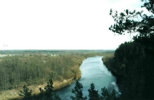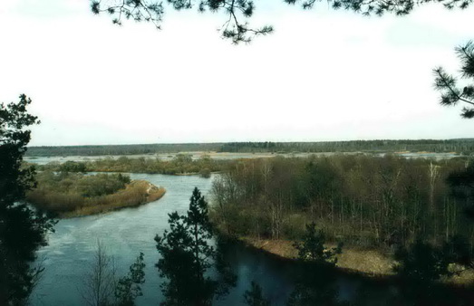 С обрыва открывался симпатичный вид на разливы и левобережную пойму Березины. Ветер рябил сталистую непрозрачную воду. Однотонное облачное небо. Как раз была такая пора, когда сложно сказать сейчас весна или поздняя осень. Все-таки весна: река сильно разлита.