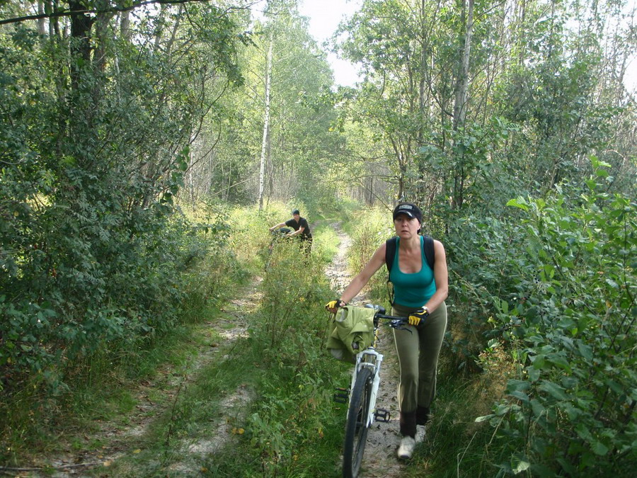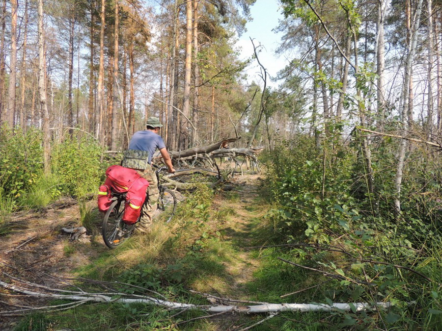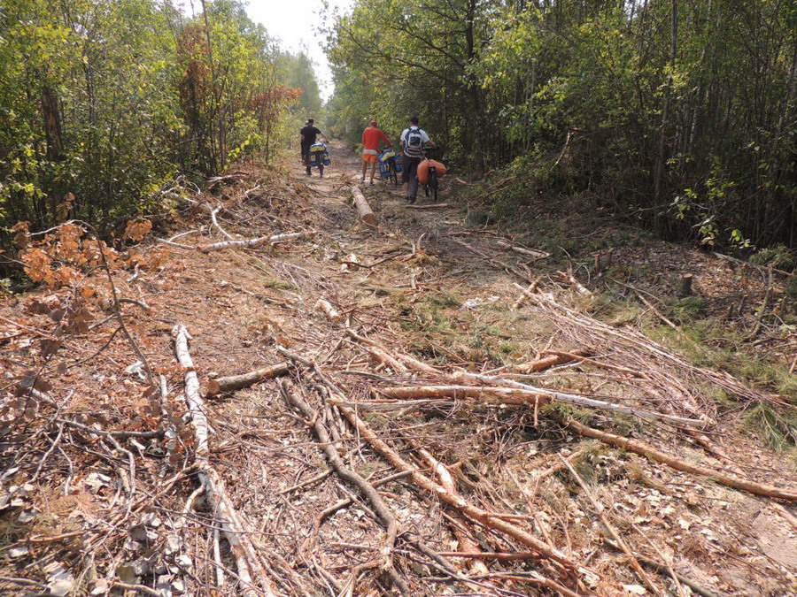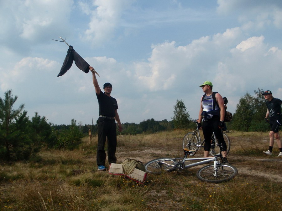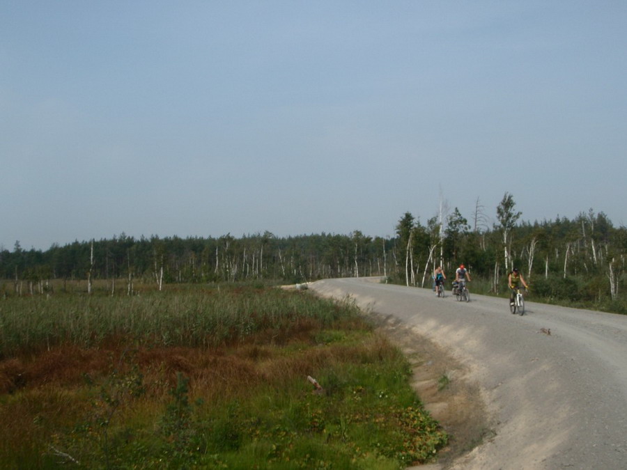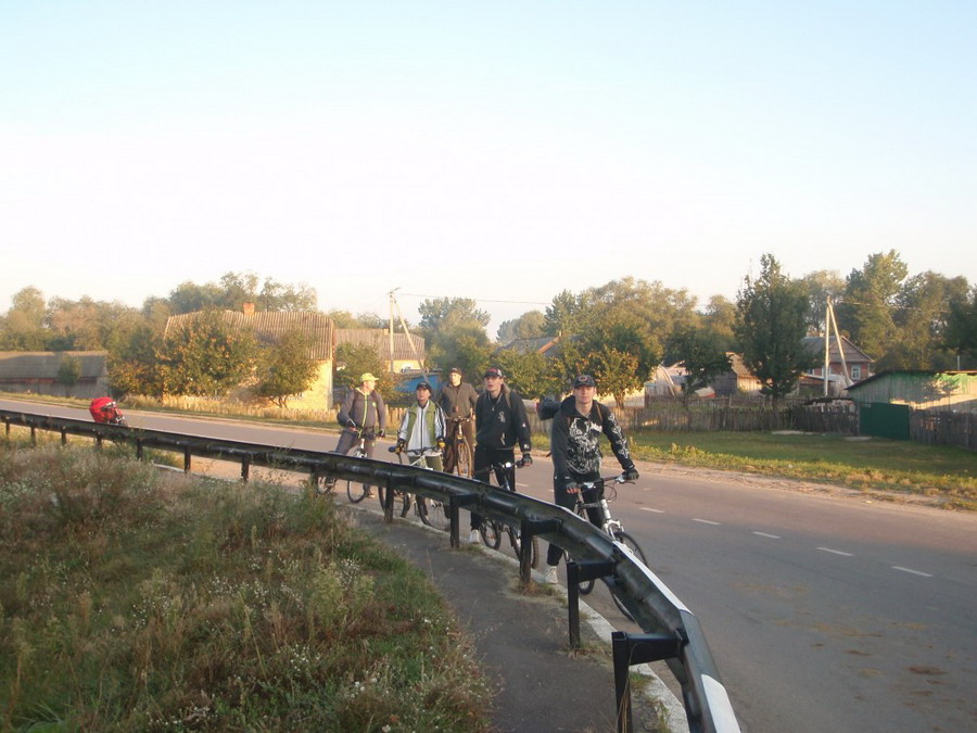 От деревни Тетебличи до начала военной дороги 4 км. Катить по песку. Крепкий гравий начинается только в лесу. Далее ехать одно удовольствие. Лагерь разбили не на каком-либо берегу реки а просто при беседке в лесу. Нужные запасы воды и овощи из деревни доставил Шпакевич. По такому случаю даже зарезал козу. 18 человек козу потушили и съели. Мясо самого высокого вкусового свойства.