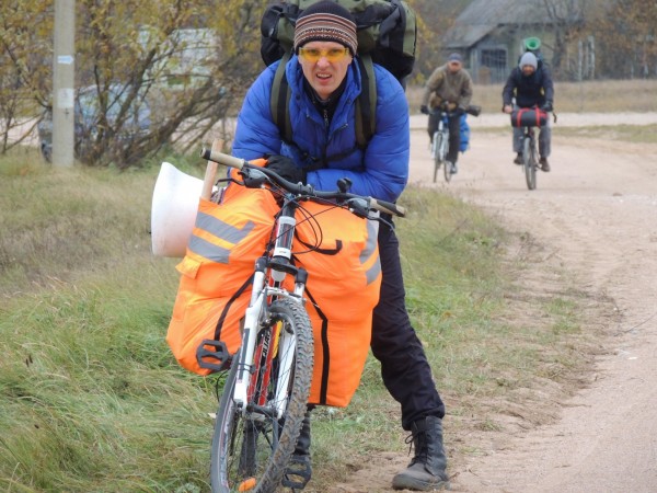 Лагерь звучал многоголосым сливающимся воедино гулом с отдельными выкриками и восторженными возгласами. Кроме велосипедно-действующих участников в лагерь приехала и команда моральной поддержки и технического обеспечения. Это были рыбак и превосходный повар – Максим Гламурный (кстати, уже с эвакуированным Андюшей Хайруллиным и его велосипедом), Сантехник, друг Алексея Сантехника Максим и герой следующего дня Андрюша Мышка с голосом не то Саши Павлюченко, не то бумажного лося Аристотеля из бумажных мультиков. Андрюша уже крепко выпил и был в превосходной форме, стараясь угодить, где помощью, а где просто житейским советом. Был еще давно не встречавшийся Нестерович Марк Абрамович. Кроме того привезли Виктора Калину.