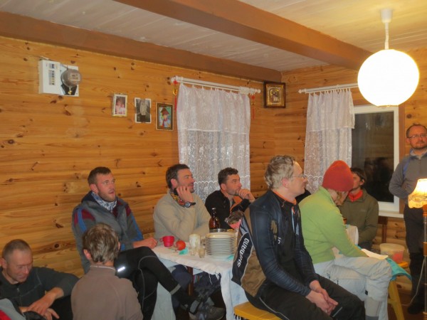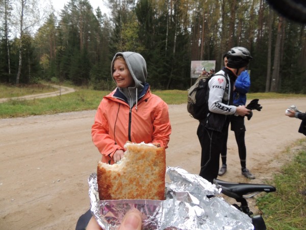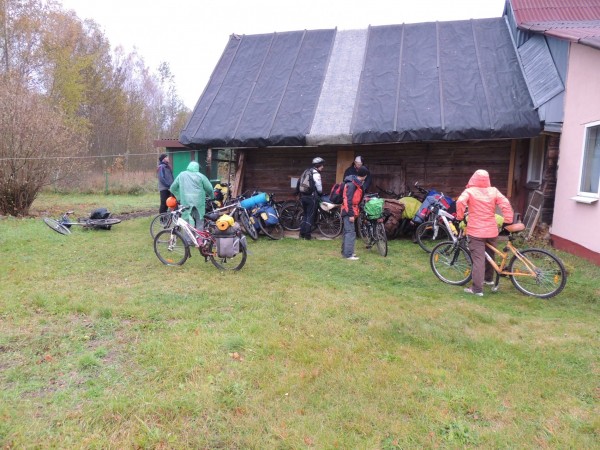 Ехать дальше уже смысла не было. Остались не прочитанными лекции (теоретическая часть похода). Под дождем не очень-то почитаешь, а люди готовились. Здесь же сама обстановка того требовала. Начало к тому же темнеть, хоть это фактор второстепенный. Потом удобно было тут помыть исключительно грязные велосипеды. Но самое главное, что уже отчего-то выехал водитель подгруппы Смирнова. Да и хозяевам приятнее, если гости посидят.