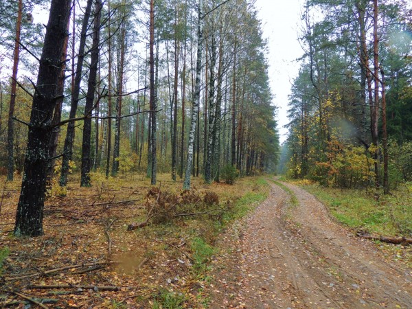 Прекрасная дорога продолжалась и дальше. Она была довольно прямая с редкими изломами линий. Шла сразу почти строго на юг в хорошо скрывающем от ветра лесу. Лес вдоль дороги тут сплошь молодой и не кондиционный. Пока сюда снова придет леспромхоз, просуществует лес этот дай Бог лет пятьдесят. Было и уютно и не уютно одновременно. Сделалось вдруг совсем мглисто, и заморосил дождь. Не вуаль и сеево, а капельно и навязчиво.