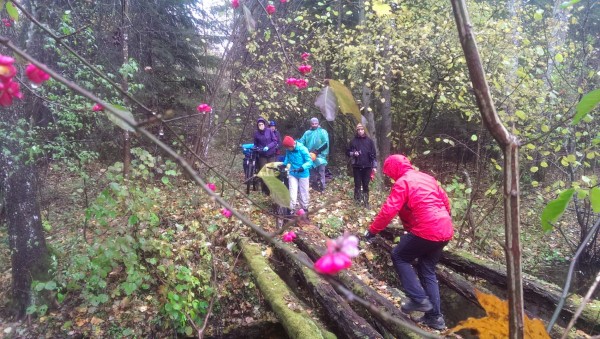 Нас ожидала переправа через лесной ручей по разрушенному мостику.
