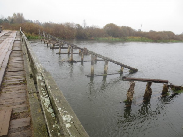 По очереди осторожно переходили по уцелевшим жердям. Некоторые несли свои велосипеды наперевес. Иные же катили его по соседнему бревнышку.
