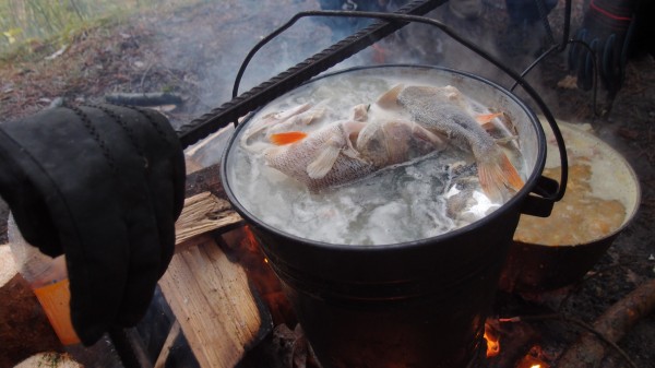 Андрюша Мышка с голосом бумажного лося Арситотеля из бумажных мультиков с удовольствием помогал чистить рыбу и варить уху.