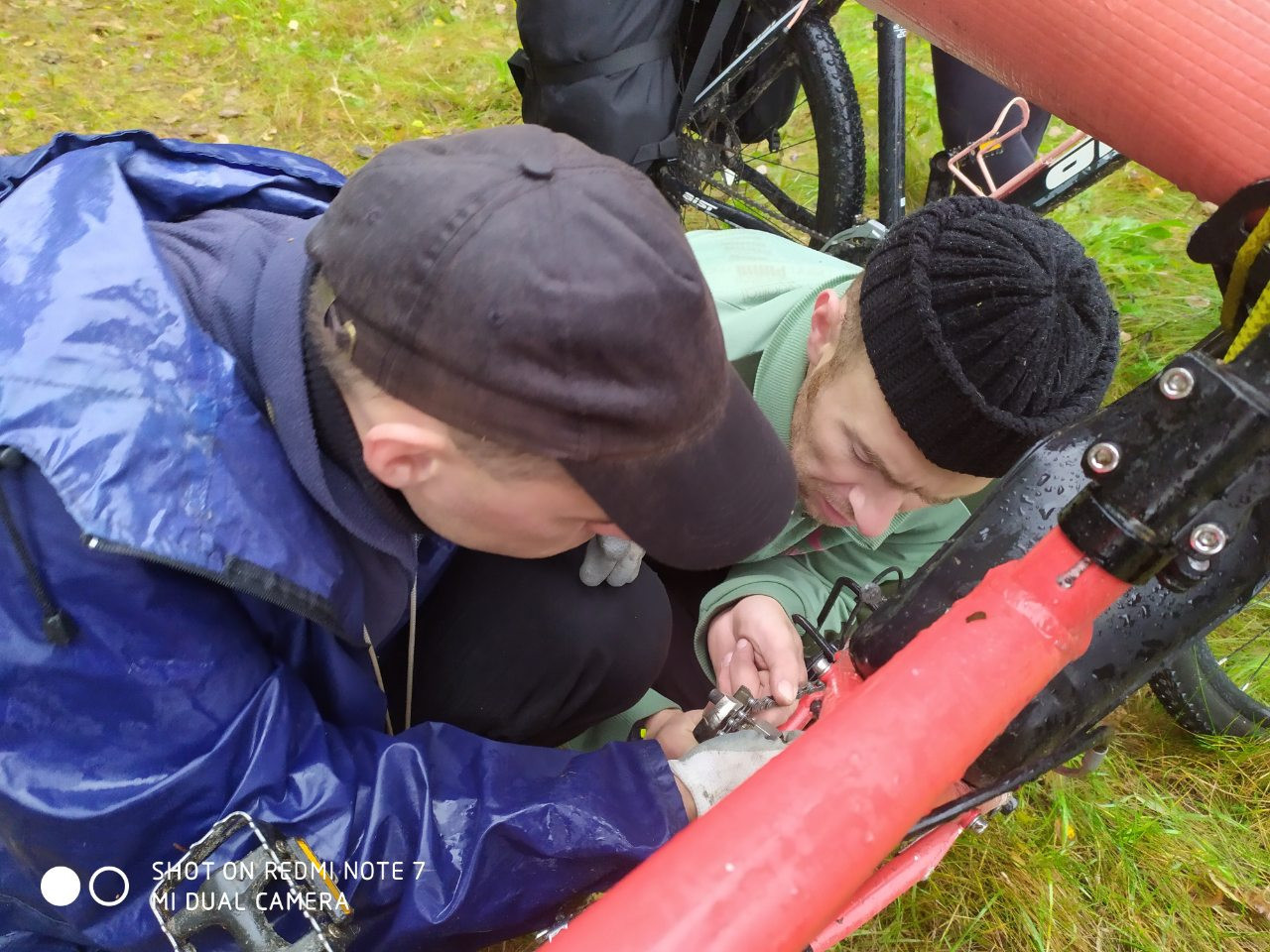 Повреждения МТБ – порыв цепи у Миши Миндибекова. Ликвидирован в походных условиях, но, правда, путем сломаных двух китайских выжимок. Также повреждение колеса Сергея Ковалева.