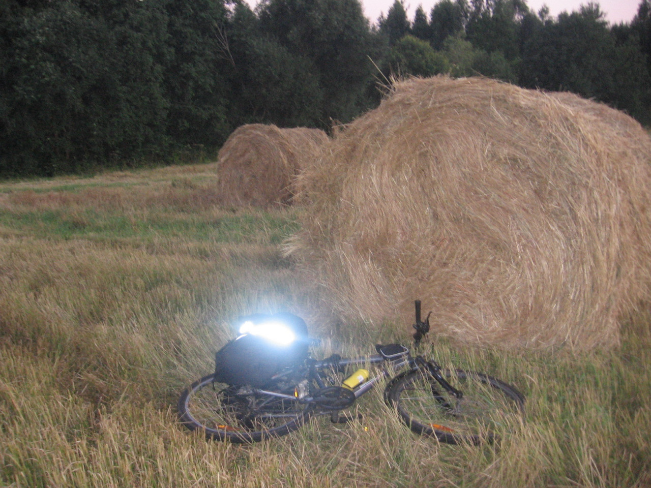 Порядка двадцати километров пробежал по двухполосому асфальту. Было все-таки немного жарковато. Пришлось свернуть в сторону. Увидел с левой стороны дороги небольшое поле. На нем катушки соломы. Рельефность была именно такая, что с дороги не видно. Ветерок дул ровно столько, когда комфортно и нет ни одного насекомого. А за катушку можно спрятаться с нужной стороны, чтобы не мешало солнце. Приятно пахло соломой. Так и проспал два часа.