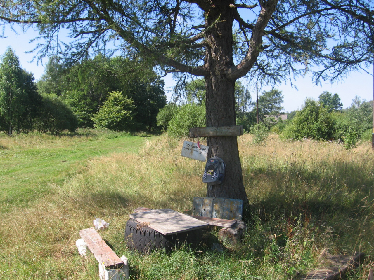Пасторальный пустырь. Здесь растет раскидистая лиственница лет сорока. Под лиственницей своеобразный пятачок – автобусная остановка – деревня Стариновичи. Автобус на Шумилино ходит два раза в день.