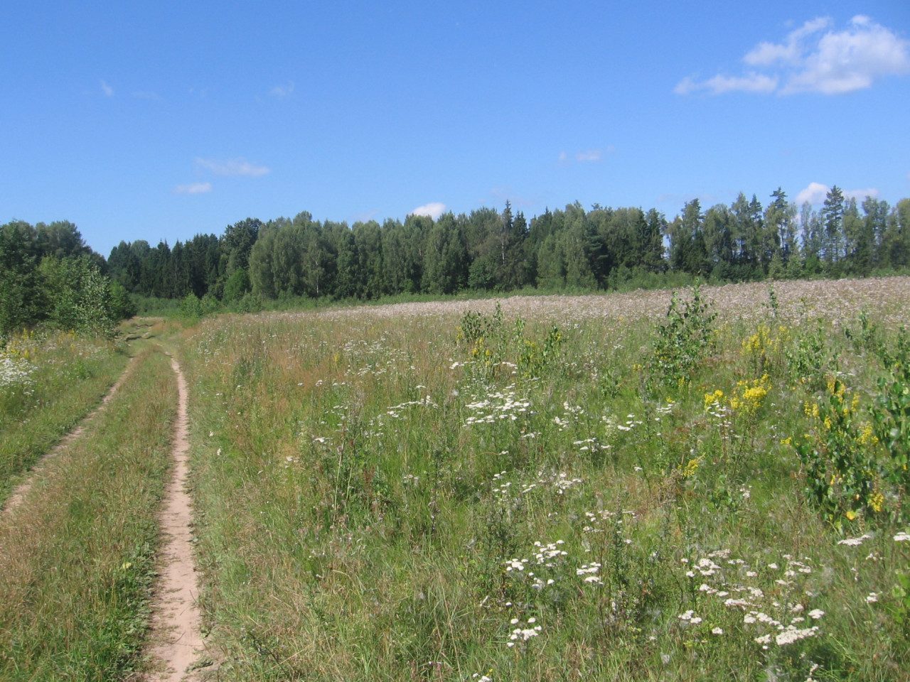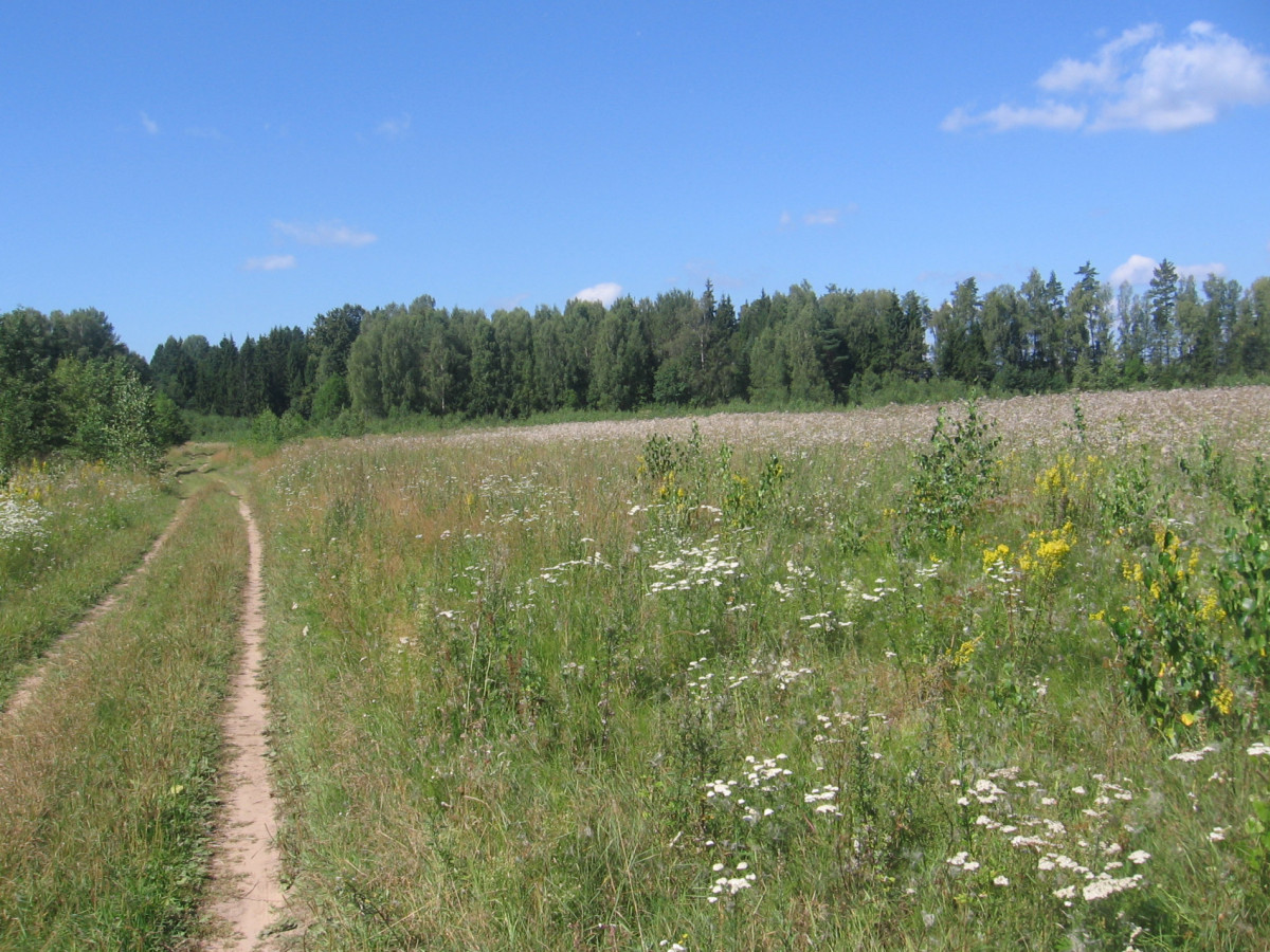 Песчаные участки такие впервые за все время, но они в принципе и закончились быстро. Дальше было без песка. Дорога представляла собой травянистую колею. Она где-то даже проходила в тенечке. На открытых солнцу участках на жаре благоухала пижма.
