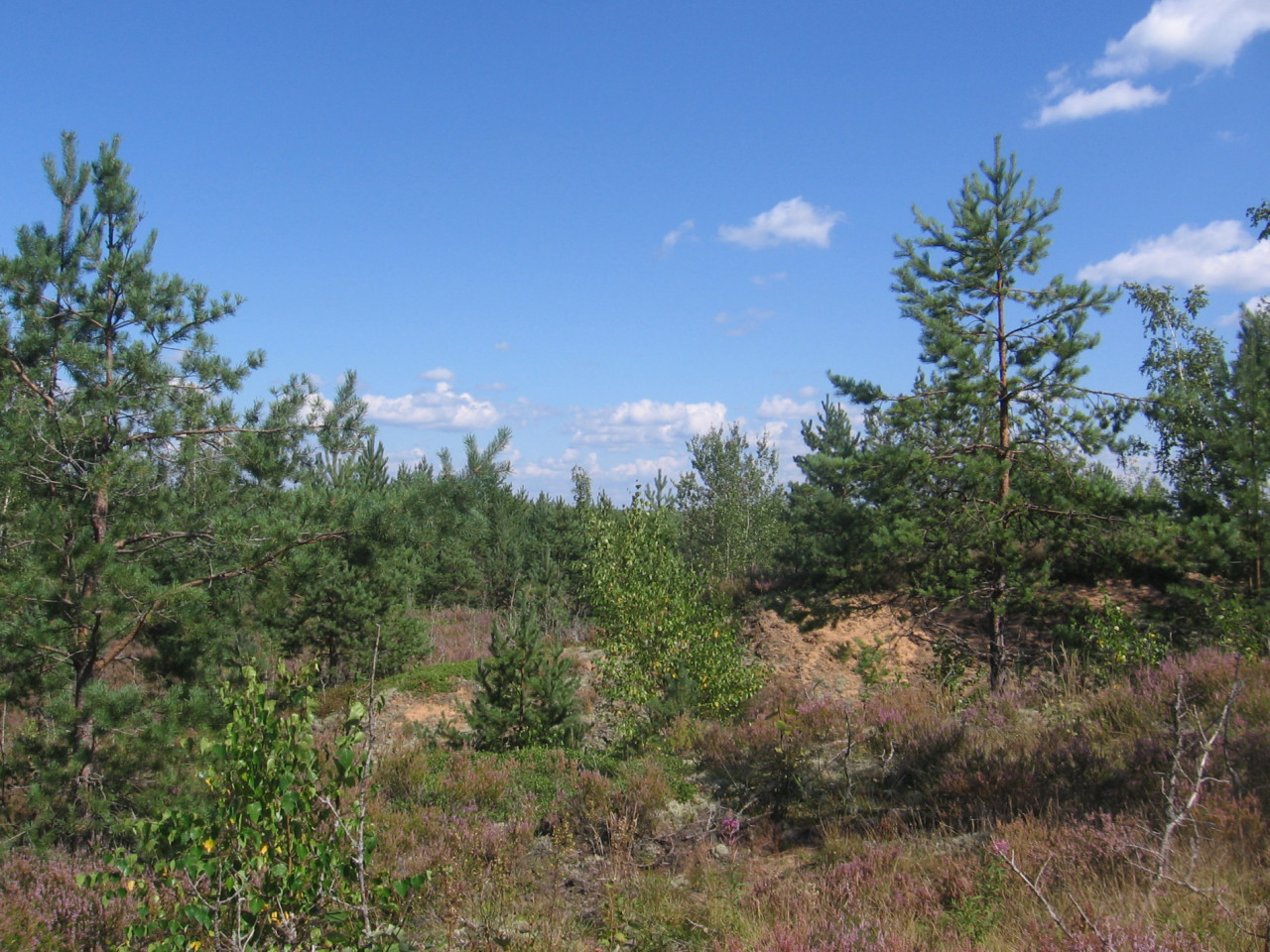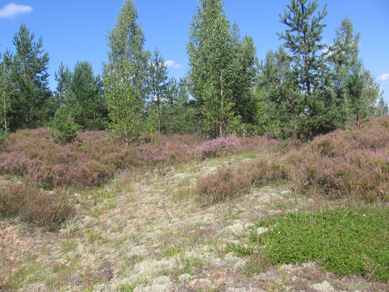 Косвенно стало понятно, что начался полигон. Гигантские следы воронок, рельефная местность с холмами, барханами и песчаными пустошами. Господствующие сиреневые ковры вереска смотрелись весьма живописно.