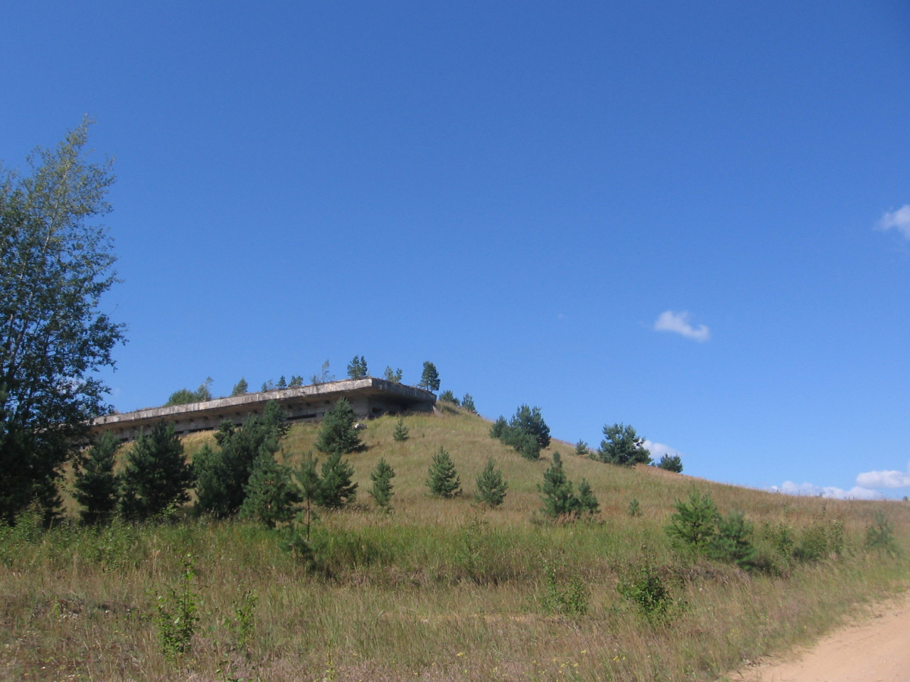 Дорога пошла в горочку и тут на ее апогее показалось колоссальное и вместе с тем мрачнейшее сооружение. Приземистое и с гигантскими бетонированными перекрытиями. Ниже перекрытий, узкие проемы окон. Не иначе как это пункт управления огнем.
