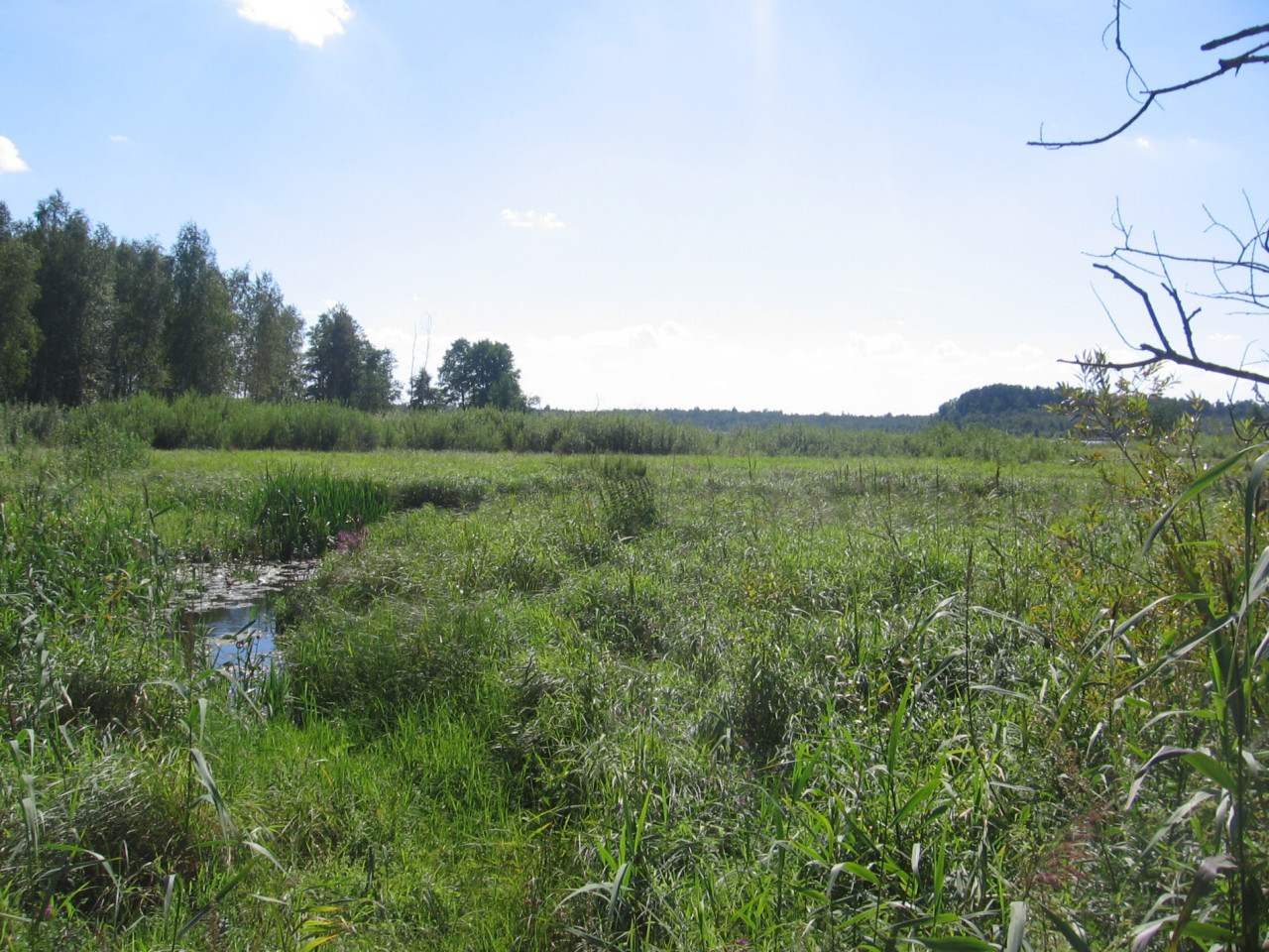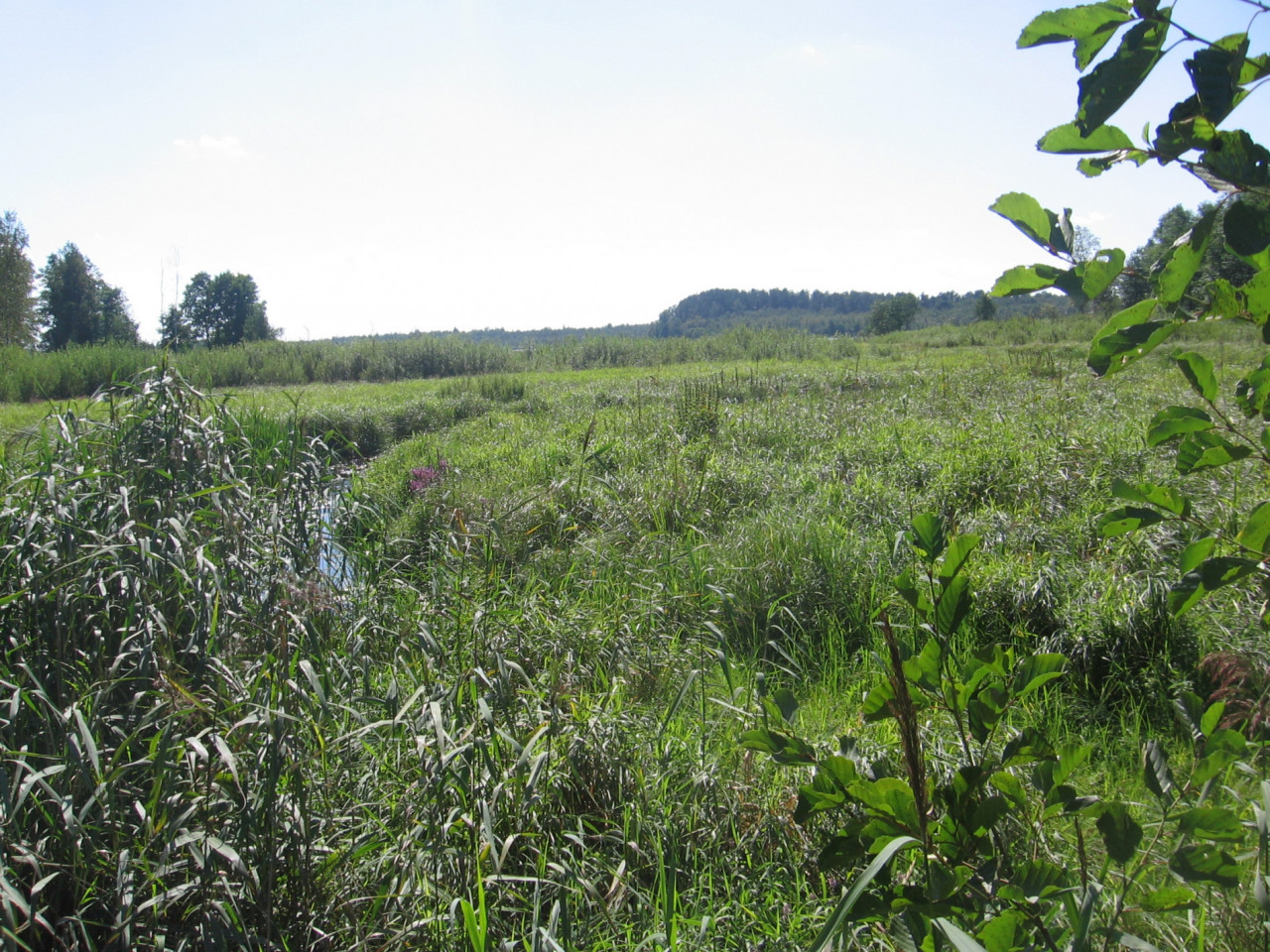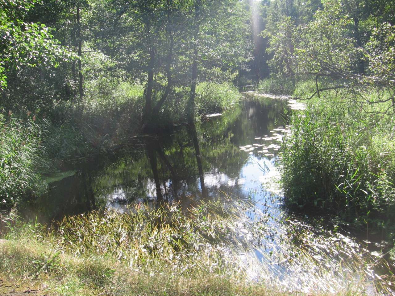 Да и торил дорогу я среди розг ольхи, березок и ивняка сначала вполне демократично. Но последние 200 метров доставили тяжелейшие страдания. Путь преградила длинная лужа с необозначенным дном. Конгломерат перекошенных плит обильнейшим образом перерос тростниками. В лужу засасывало. А по тростникам дорогу приходилось пробивать. Продвигаясь шаг за шагом, а велосипед протягивать в буквальном смысле слова. Так было метров двести. Происходило всё на тропической инфернальной жаре с массированной атакой слепней.