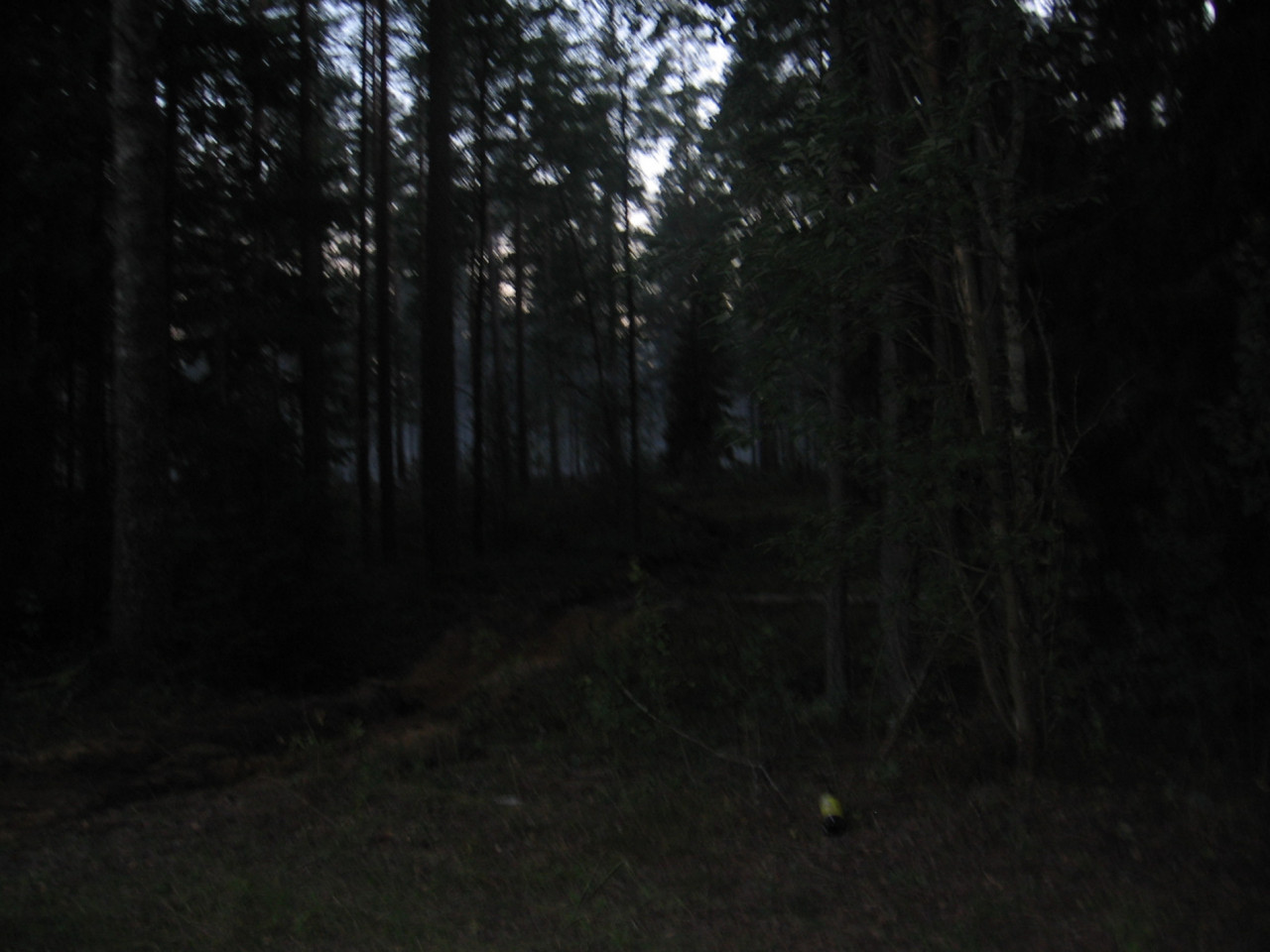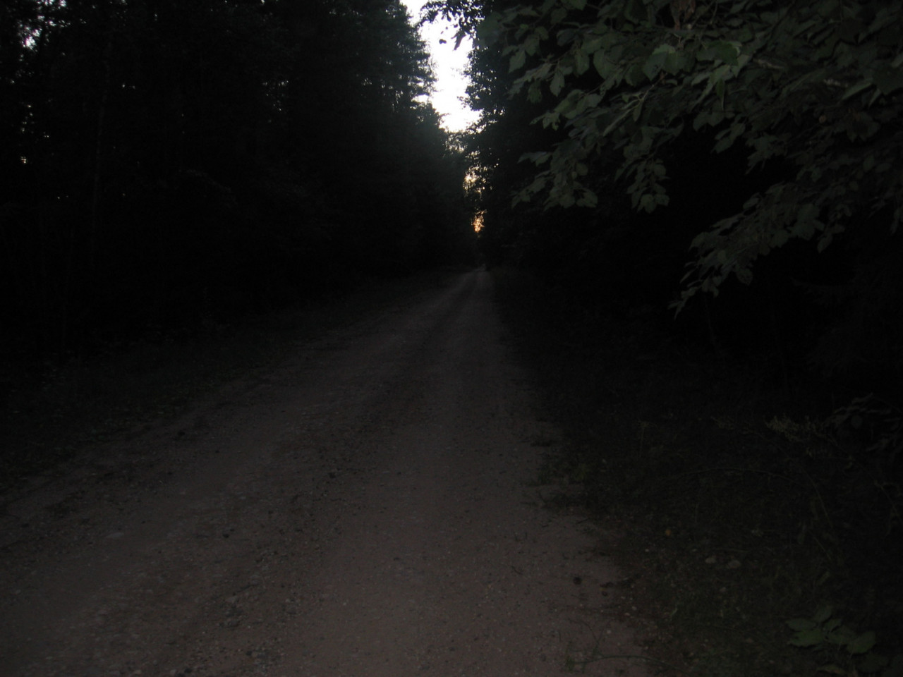 Асфальт приятно шуршал шинами. Это мое любимое предвечернее время. Стемнело. Два фонаря были очень эффективны. Я их сфокусировал очень удобно. Один на поближе, другой на подальше. На дороге раздавленные ежи. Часто попадались в поле зрения летучие мыши. В глаз попал массивный жук, не то стрекоза.