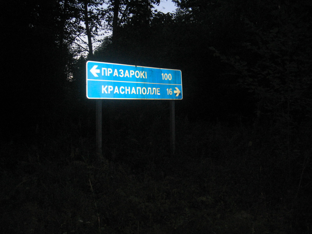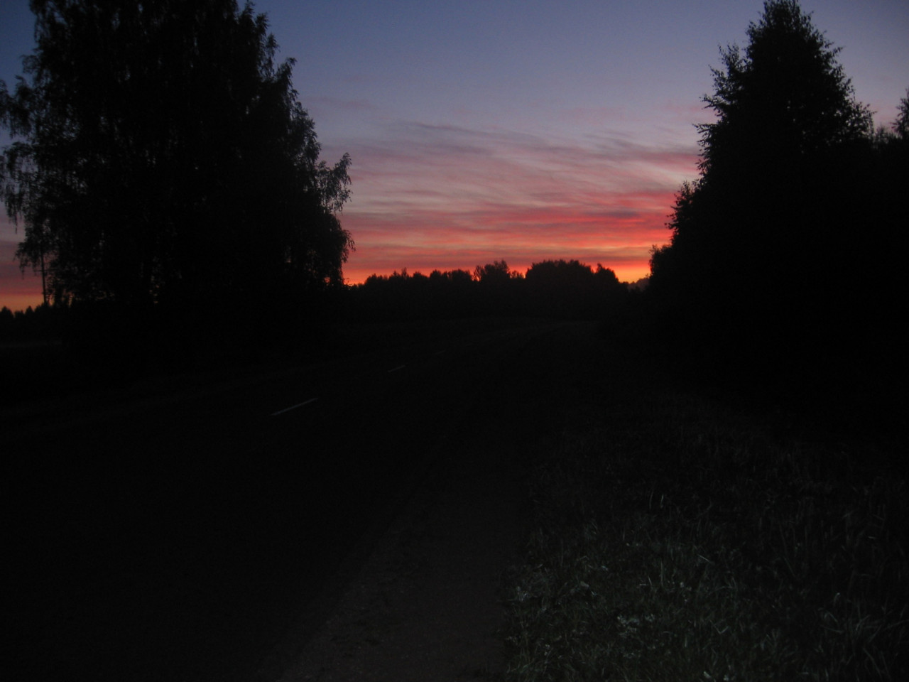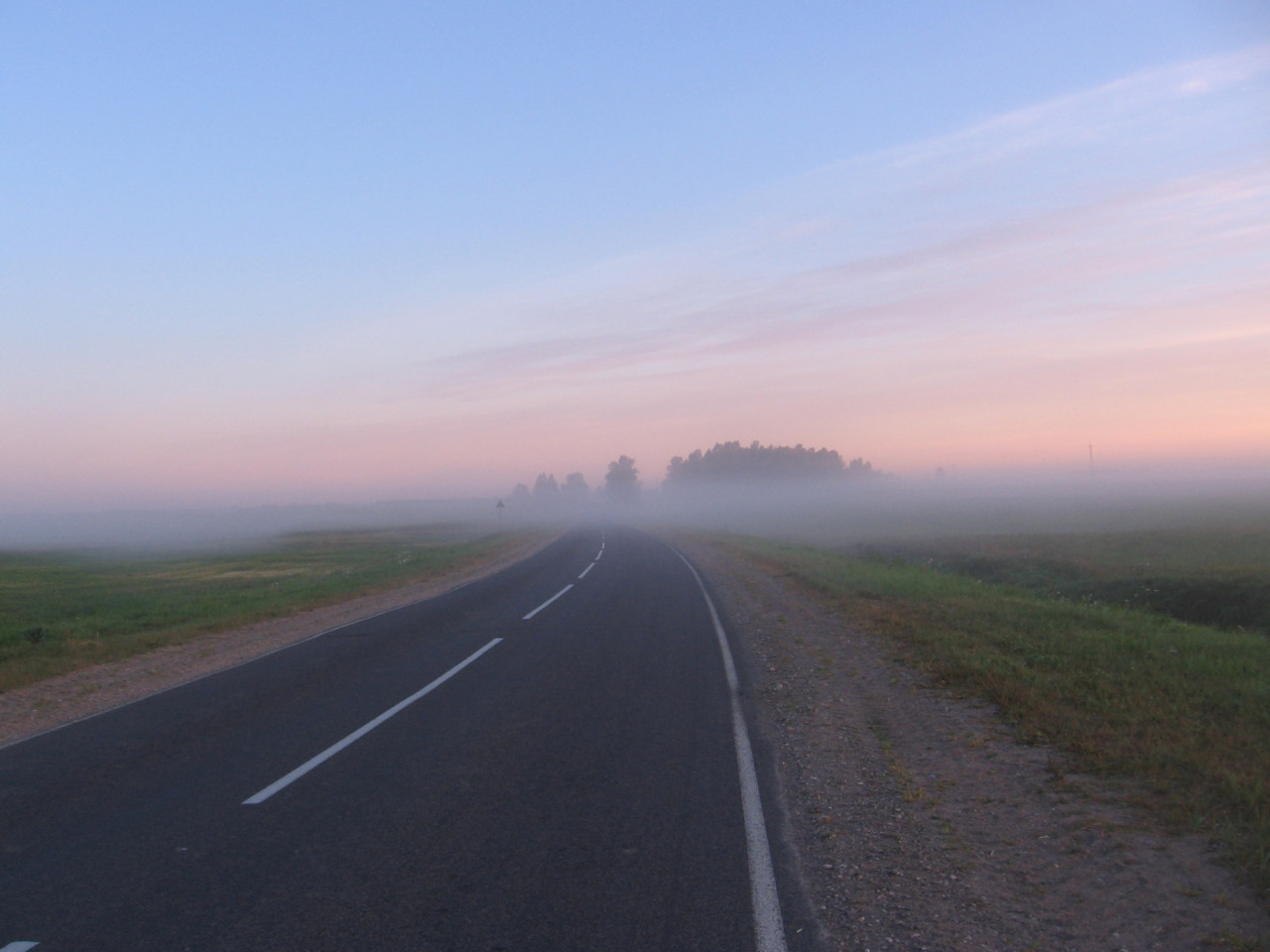 Дорога дальше по правому берегу Дриссы. Ехал уже давно в темноте. После деревни Прибытки перекресток. Здесь трасса Рассоны-Полоцк. С воем по ней проносились тяжелейшие фуры мастодонты. Еще до деревни Селявщина автобусная остановка. Странно, что она вынесена за деревню. Здесь поел, прилег на лавочку и уснул до ранних предрассветных сумерек. Сделалось зябко, хоть и лето и насколько жарко днем. Остановка периодически вздрагивала от тяжелых тягачей.