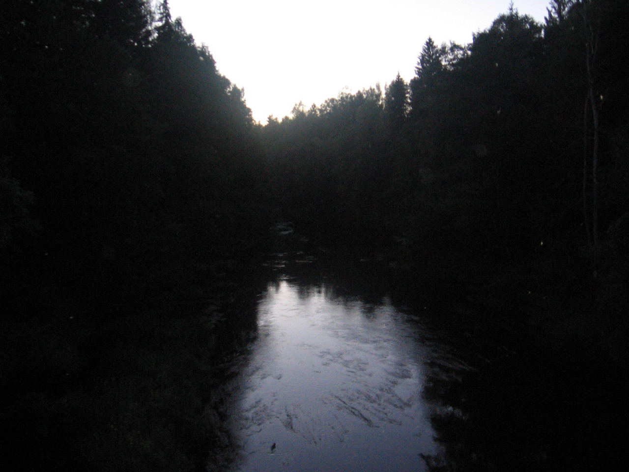 Дорога, полностью идущая в лесу, пустынная совершенно вечером, вывела меня на мост через Дриссу. Дрисса тоже, были хоть и сумерки, но видно, как сильно просела. Течение слабое. Тоже летом зарастает. Река эта в списке ожидания. Ее придется разбить на три похода ПВД. Заключительный участок на моторных рафтах. В 2011-ом году недалеко отсюда дайверы подняли со дна реки идола. Весил он килограмм 150. От находки офигели, полагая, что это изделие времен средневековья (дуб прекрасно консервируется в воде без доступа воздуха). Идола завезли в Минск в археологический музей. Там уникальнейший экспонат взяли без охоты. Изделие после экспертизы признали новоделом ХХ века.