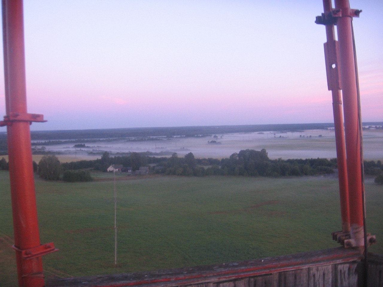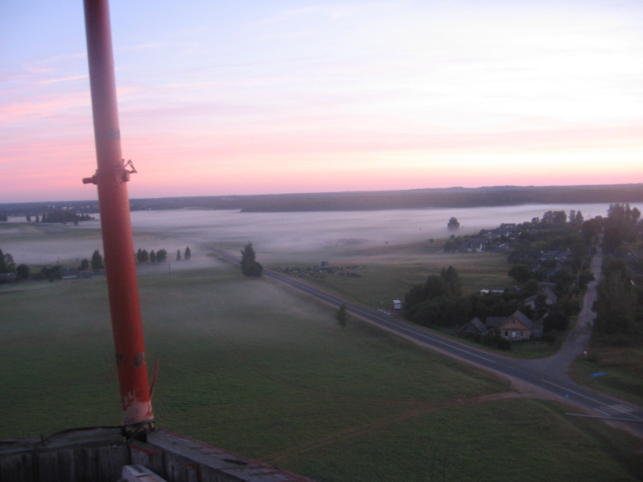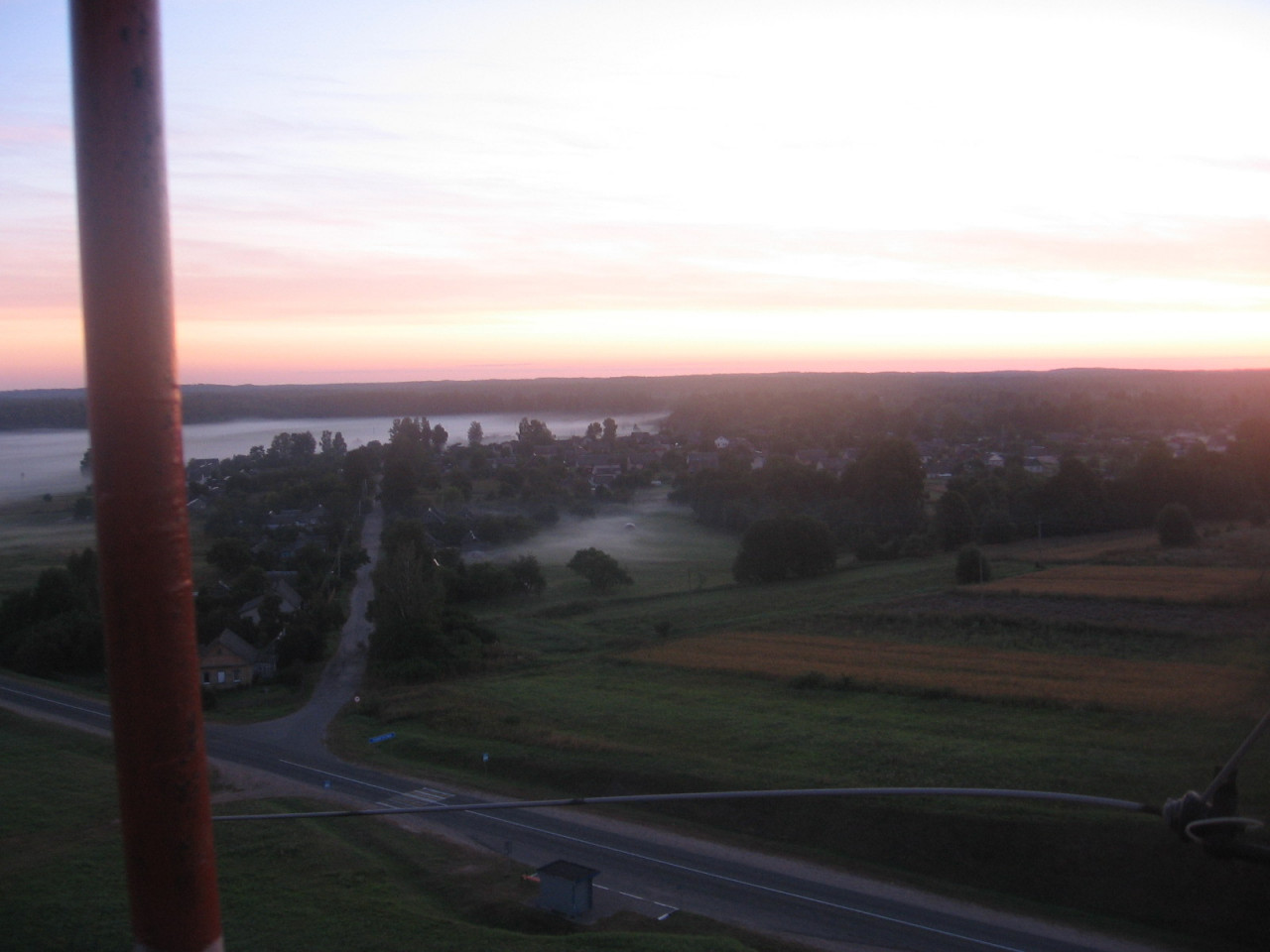 Дорога на северо-восток. До Рассон 16 километров. Небо начало алеть. Следующая деревня после Селявщины Альбрехтово. Перед ней тягун вверх. Шоссе вышло из леса. Слева на горке стоял тригопункт. Судя по антеннам, он еще и был оборудован электричеством и какими-то приборами. Вокруг такой забор с сеткой, через который не перелезть. Руками взяться не за что. Мне удалось отогнуть калитку (на замке), что как раз, если очень сильно втянуть живот, можно протиснуться.