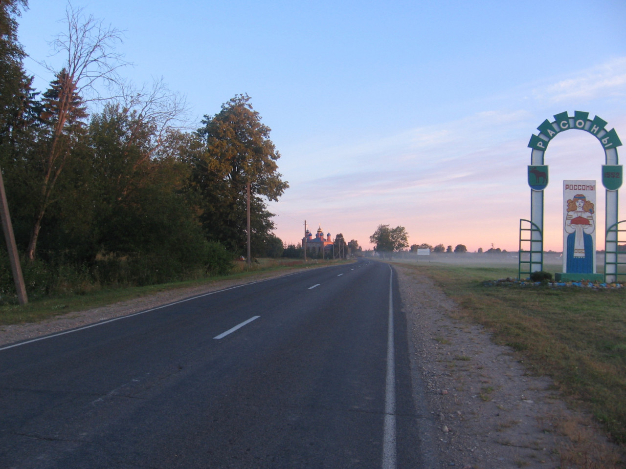Рассвет был красивый. Безветренный тихий. Дальше были Рассоны. Райцентр основан в 1552 году. Пока я ехал, он еще не проснулся.
